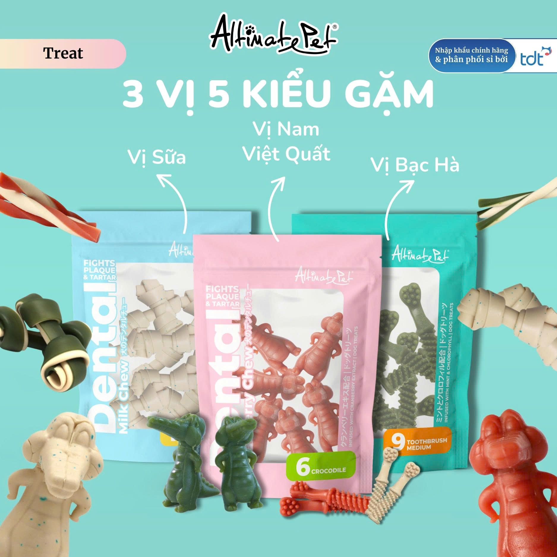 Altimate Pet Dental Chews được sản xuất tại Singapore, đây được xem như phương pháp điều trị nha khoa hoàn toàn tự nhiên, dễ tiêu hóa. Sản phẩm hỗ trợ vận động cơ hàm và loại bỏ mảng bám răng giúp cho sức khỏe răng miệng của chó luôn ở trạng thái tốt nhất.