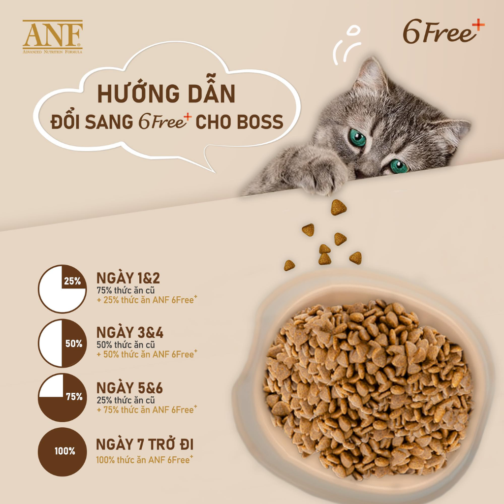 ANF 6Free+ được cải tiến với hàm lượng protein động vật cao hơn so với dòng 6Free cũ, giúp tăng cường tốc độ tiêu hóa và tăng khả năng hấp thụ dinh dưỡng, đảm bảo cung cấp các dưỡng chất thiết yếu cho thú cưng. Sản phẩm dành cho mèo con dưới 12 tháng tuổi.