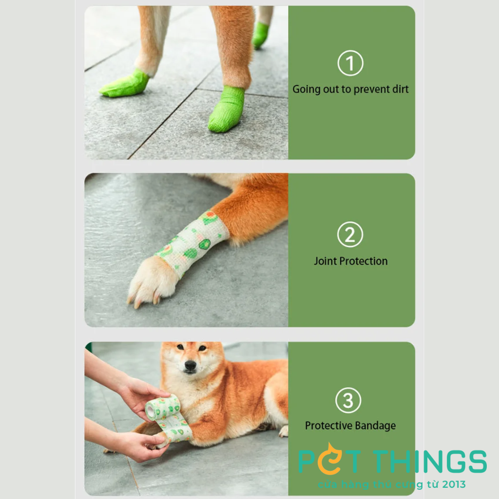 ♦ Đa chức năng: phù hợp cho sử dụng y tế, thể thao, thú y và ngoài trời. Cung cấp các đặc tính giảm sưng tấy, bong gân, đau cơ, băng bó và các hỗ trợ khác. Lý tưởng cho cả người và vật nuôi. Có thể dùng để quấn chân thú cưng khi đi ra ngoài, giúp chân không bị bẩn hoặc dính nước