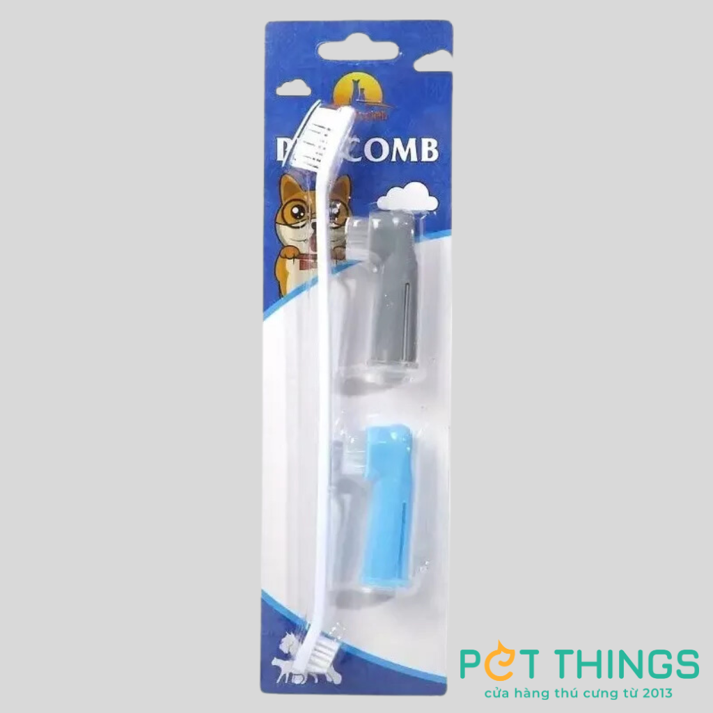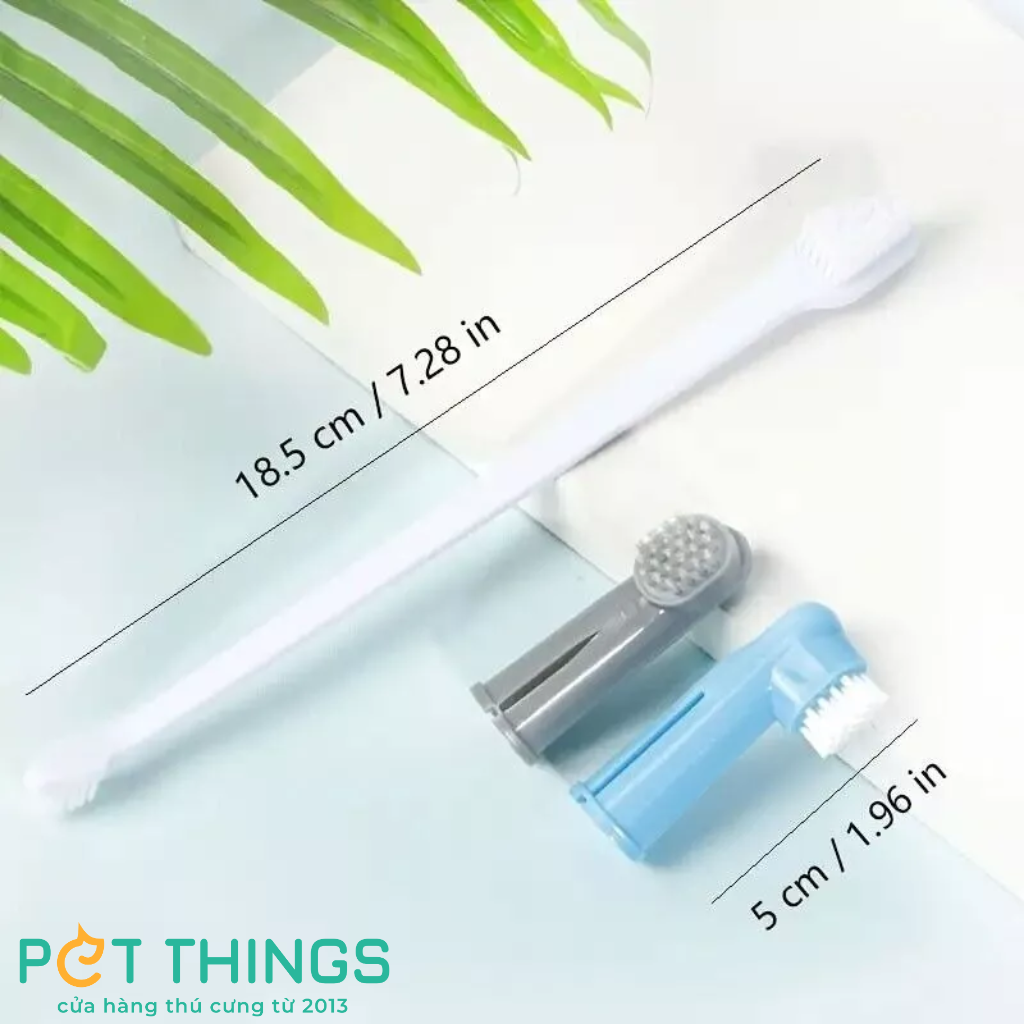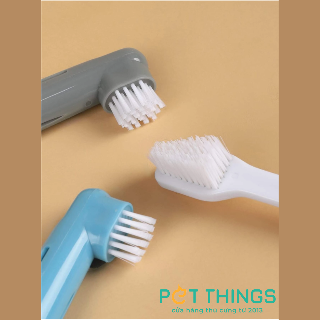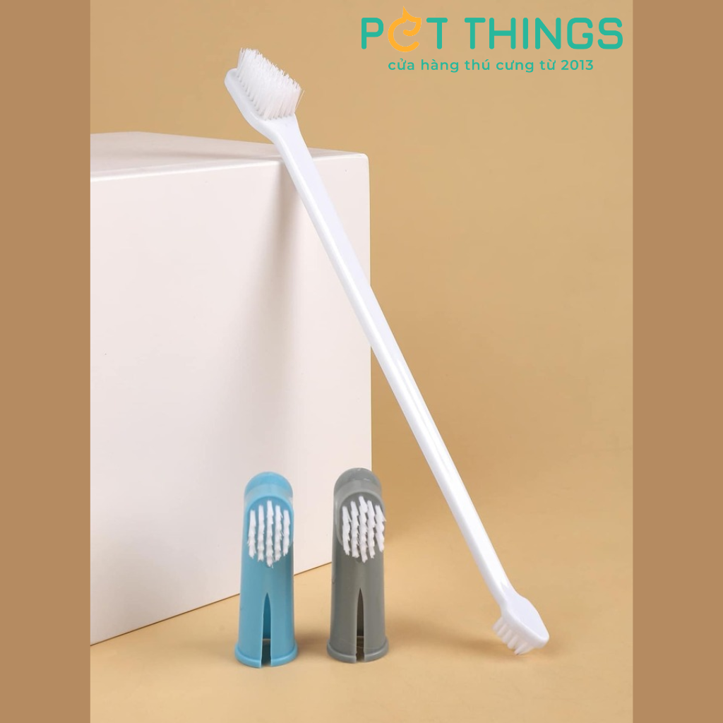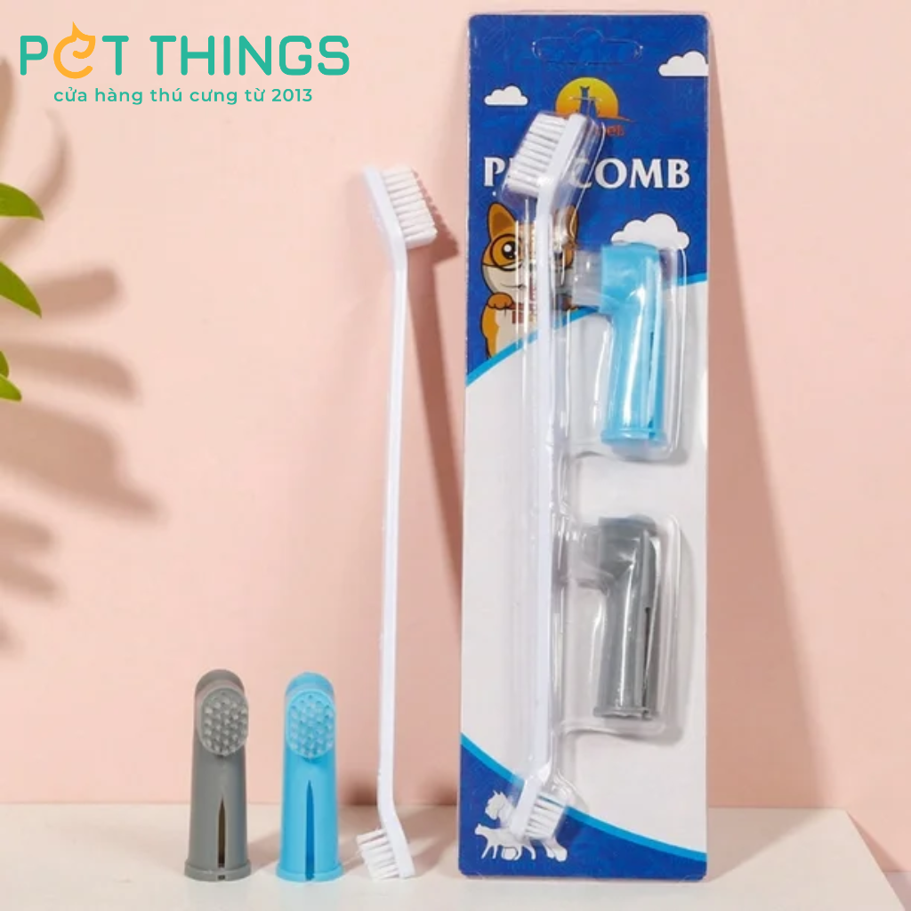 🐕 Bộ 3 món gồm 2 bàn chải đánh răng đeo ngón tay và 1 bàn chải đánh răng dài 2 đầu