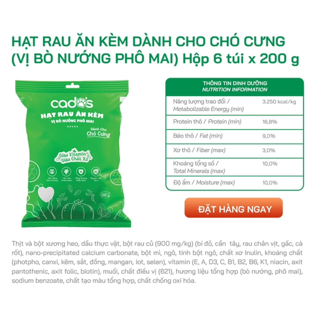 Cado's Hạt Rau Ăn Kèm Vị Bò Nướng Phô Mai Cho Chó