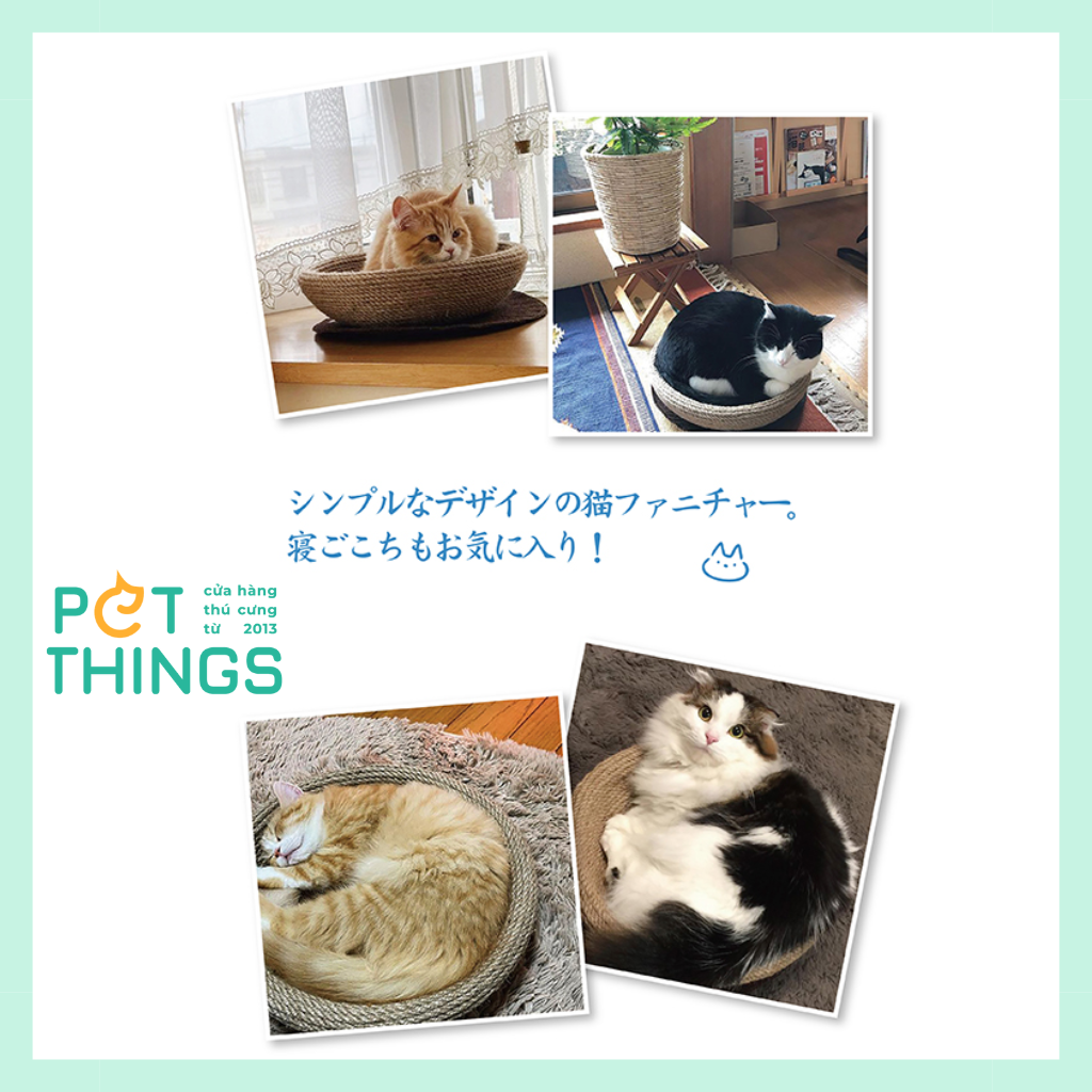 - Chất liệu dây đay bền, không dễ bị xù. Có khả năng chống trầy xước và cào cắn, giúp mèo thư giãn, giảm áp lực và giảm hư hỏng đồ đạc