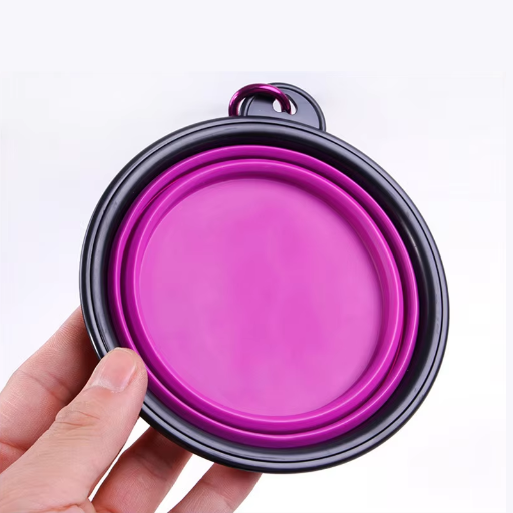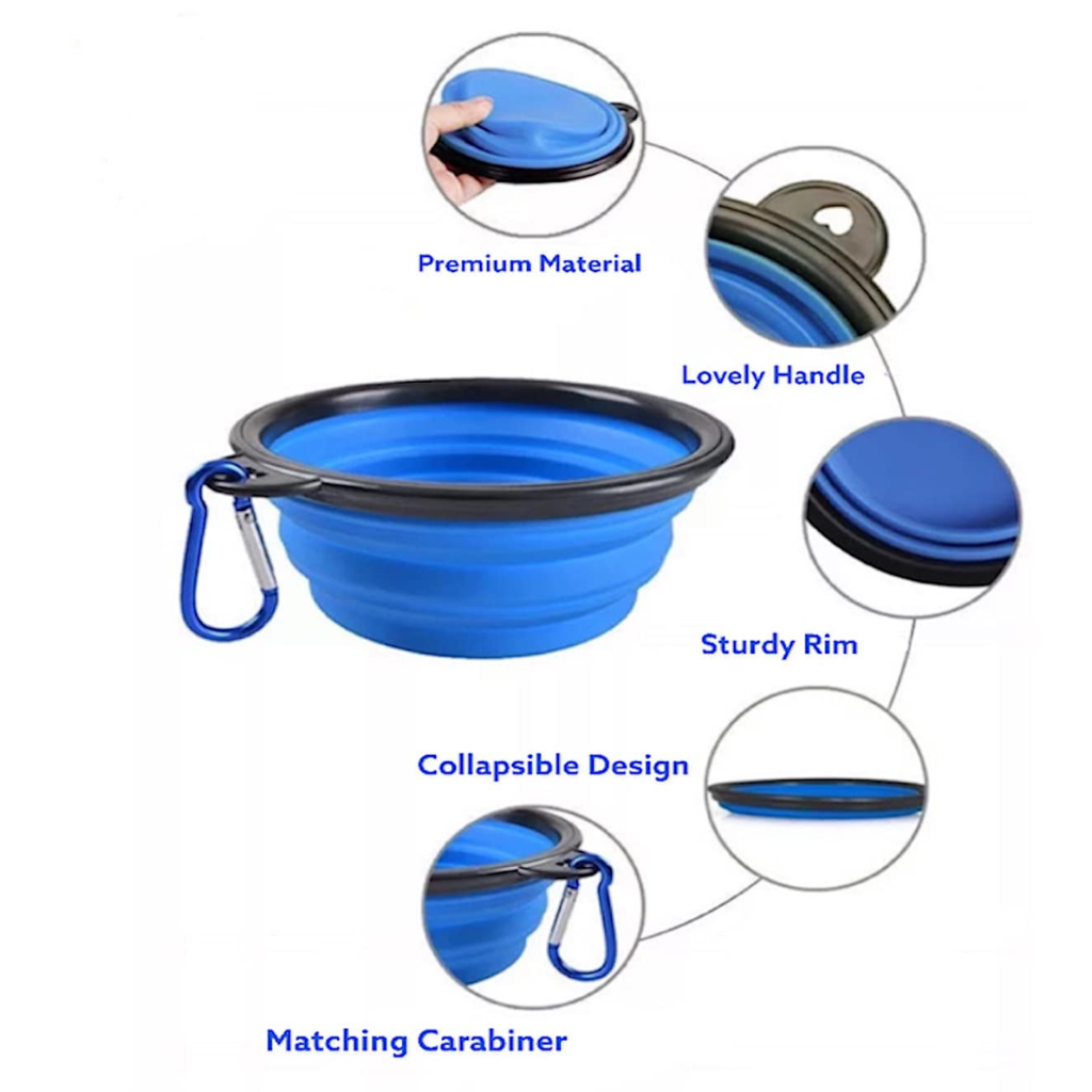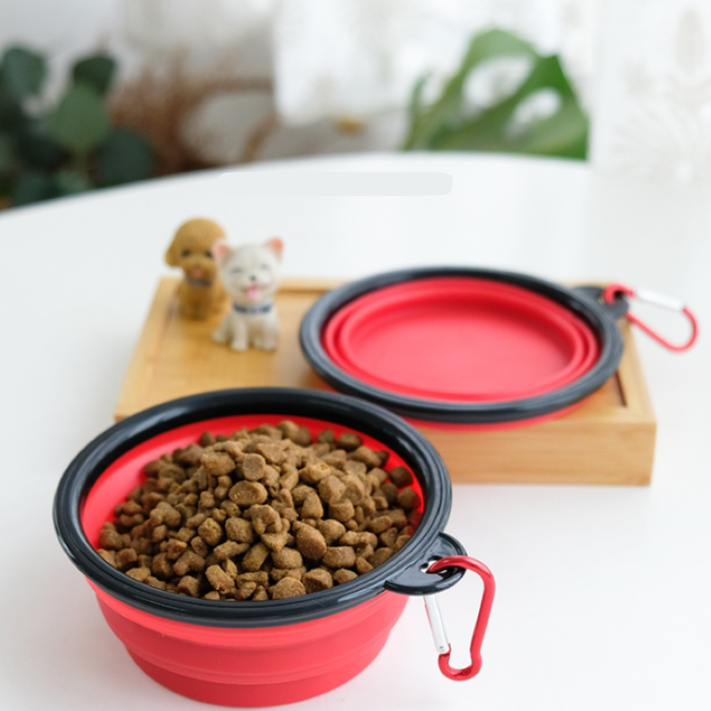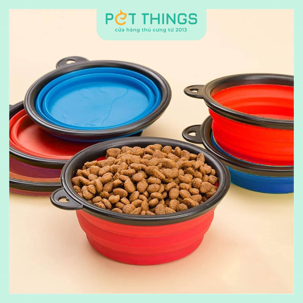 Chén ăn làm từ chất liệu silicon mềm dẻo, thiết kế có thể gấp gọn để dễ dàng mang theo, thích hợp để đựng thực phẩm và nước uống cho thú cưng khi đi ra ngoài, du lịch hoặc cắm trại. Sản phẩm đi kèm móc khóa để bạn có thể gắn cố định vào balo, thắt lưng... thuận tiện cho việc di chuyển.