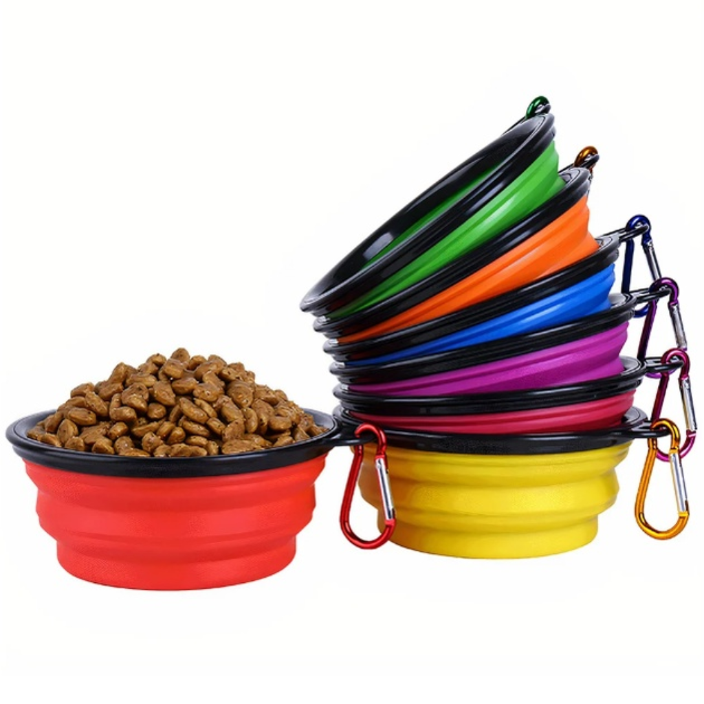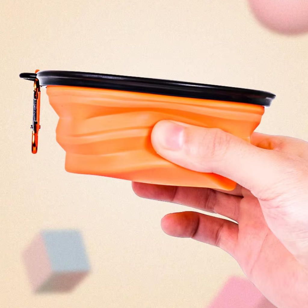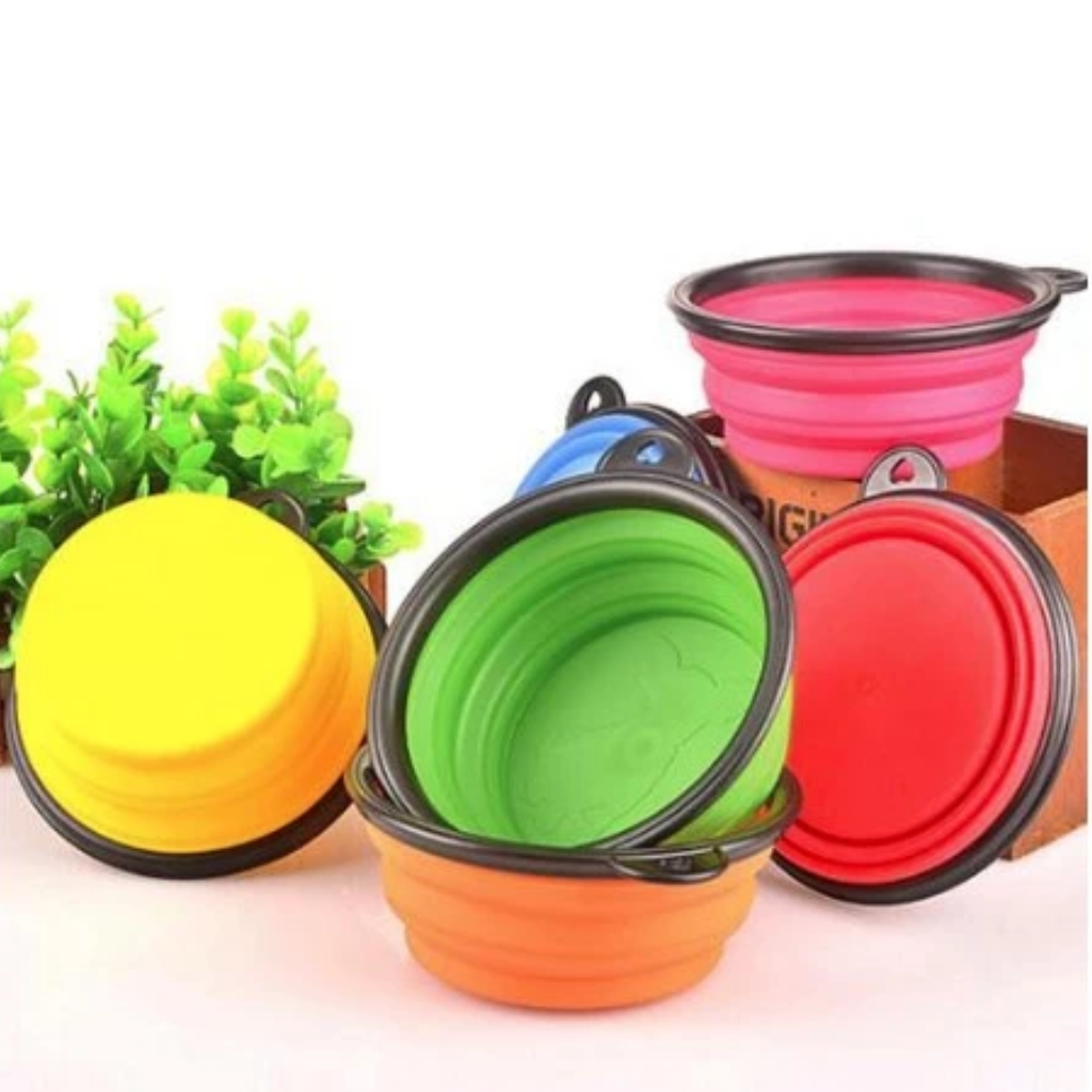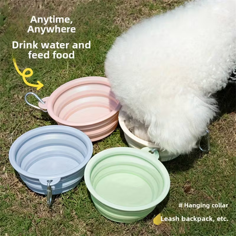 Chén ăn làm từ chất liệu silicon mềm dẻo, thiết kế có thể gấp gọn để dễ dàng mang theo, thích hợp để đựng thực phẩm và nước uống cho thú cưng khi đi ra ngoài, du lịch hoặc cắm trại. Sản phẩm đi kèm móc khóa để bạn có thể gắn cố định vào balo, thắt lưng... thuận tiện cho việc di chuyển.