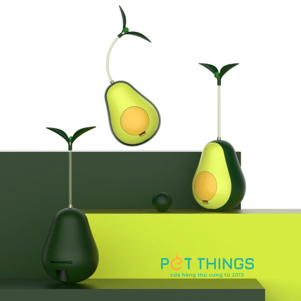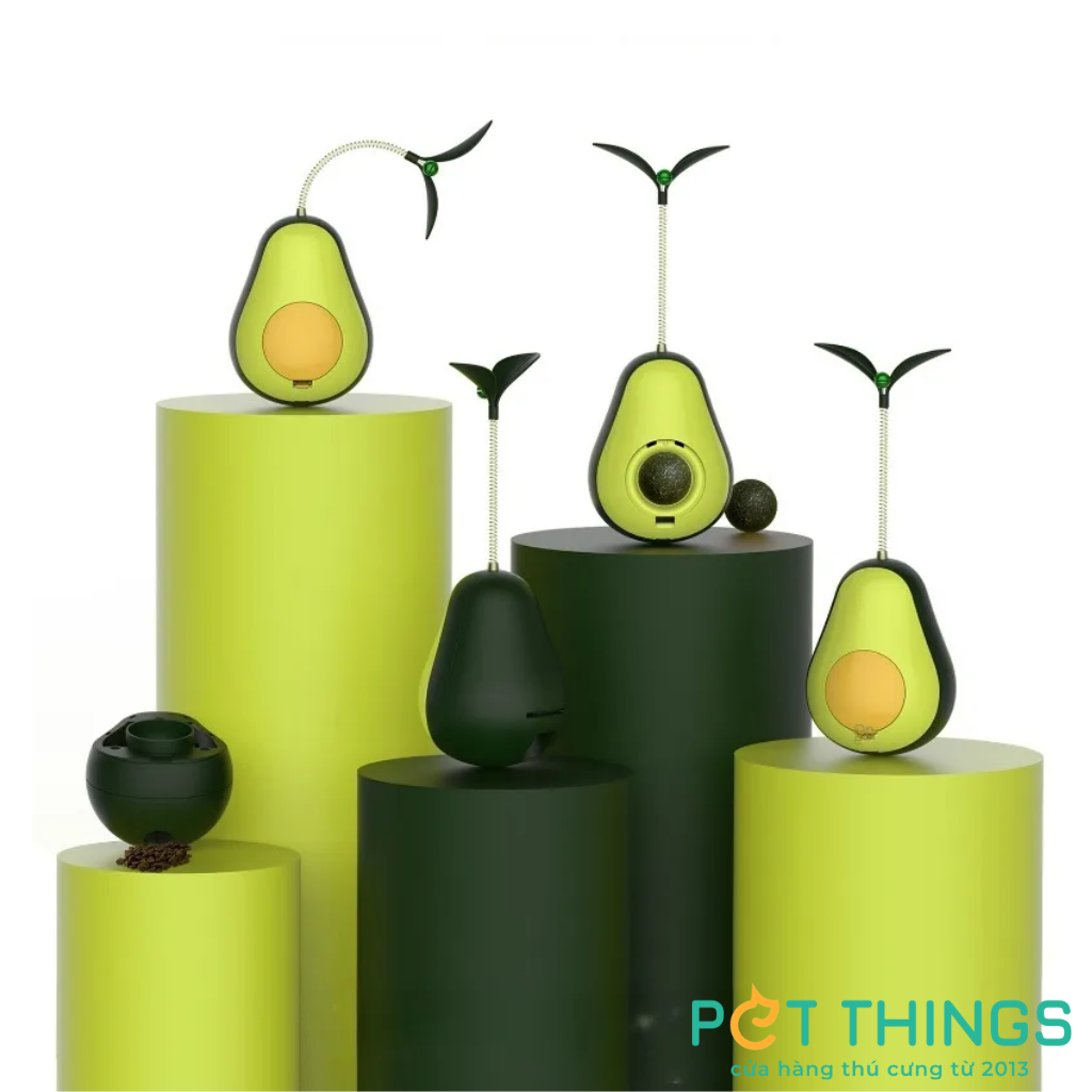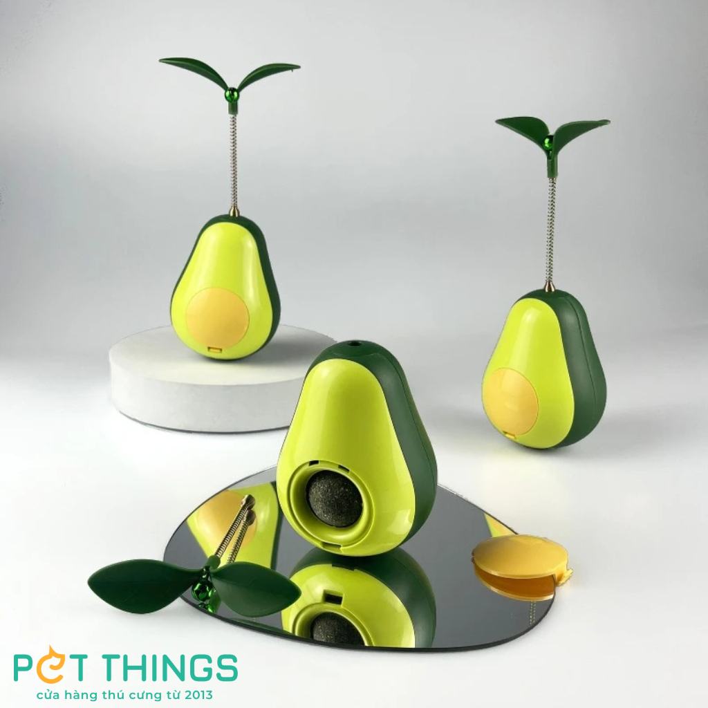 1. Lật đật hình quả bơ: Lấy cảm hứng từ quả bơ, món đồ chơi này có thiết kế lắc lư kết hợp với ngăn đựng rò rỉ thức ăn. Ngăn đựng có thể sử dụng được với hầu hết các loại thực phẩm và đồ ăn nhẹ. Sản phẩm sẽ giúp khuyến khích mèo ăn uống chậm hơn. Thiết kế độc đáo của sản phẩm yêu cầu mèo phải liên tục lắc và lăn đồ chơi để tiếp cận thức ăn, giúp tăng cường trí thông minh và khả năng thể chất của mèo