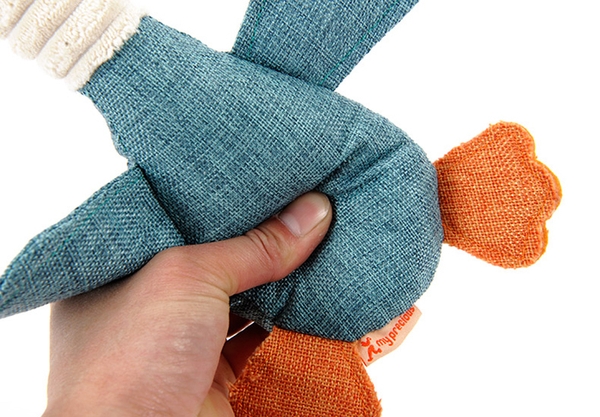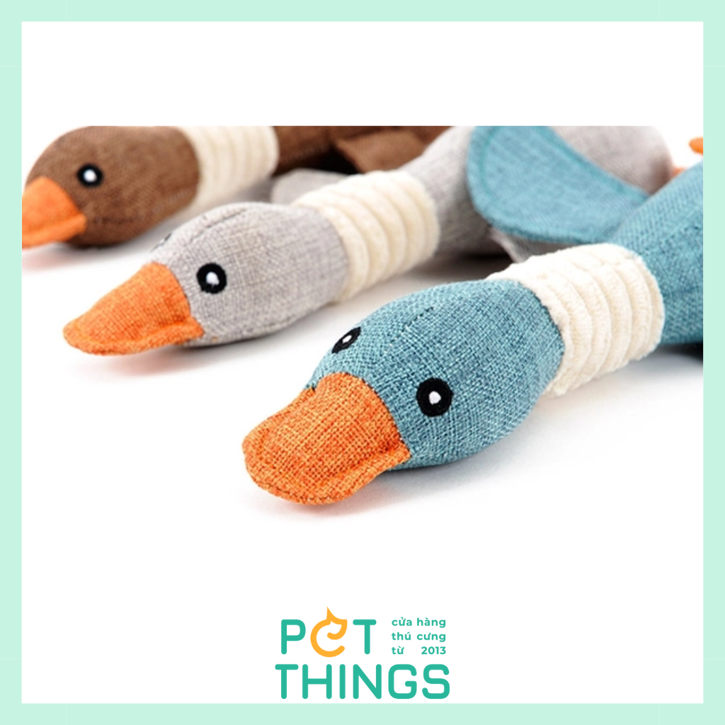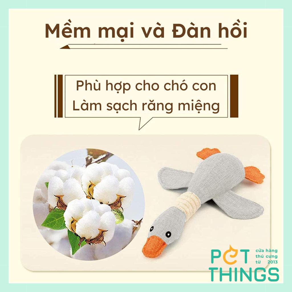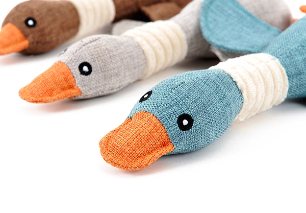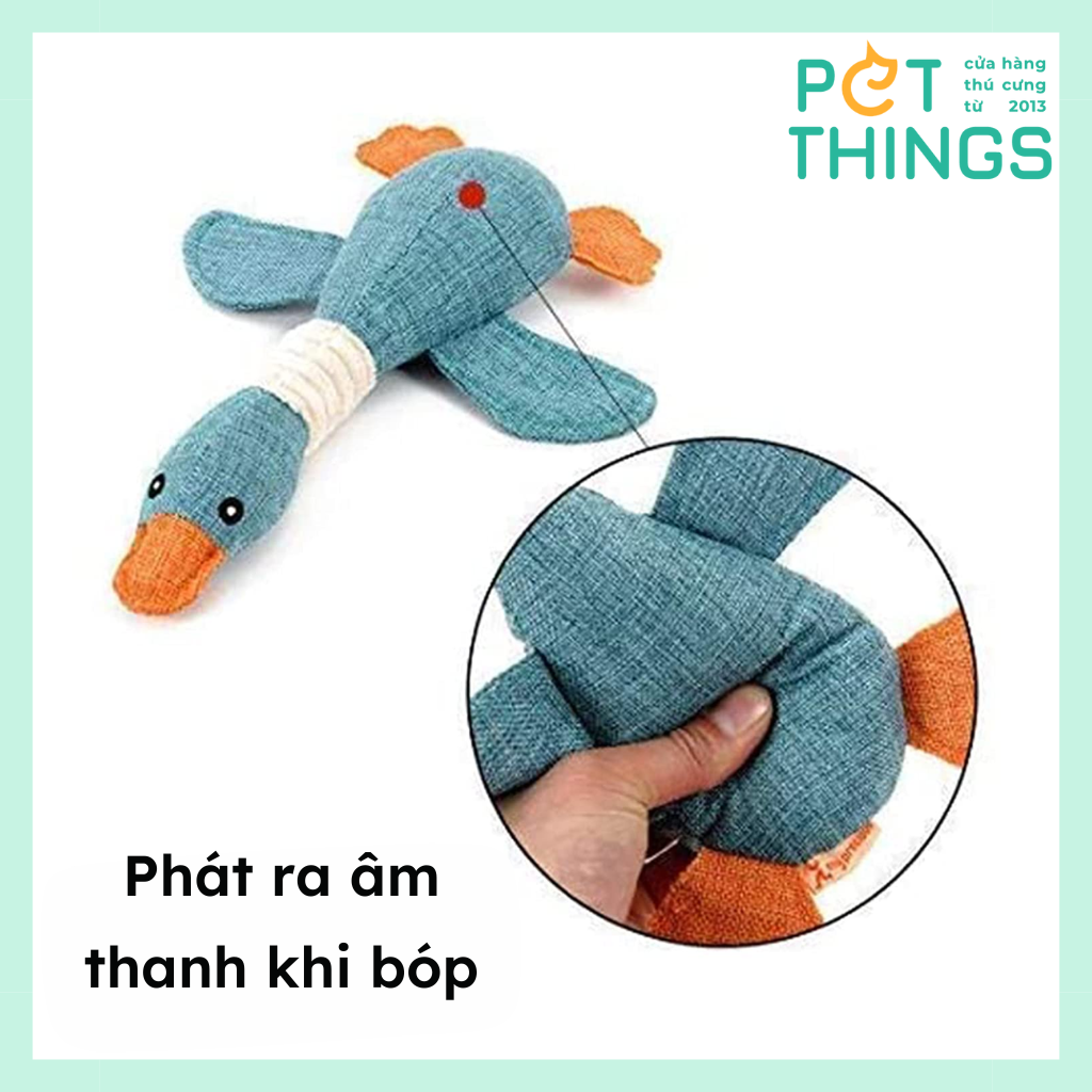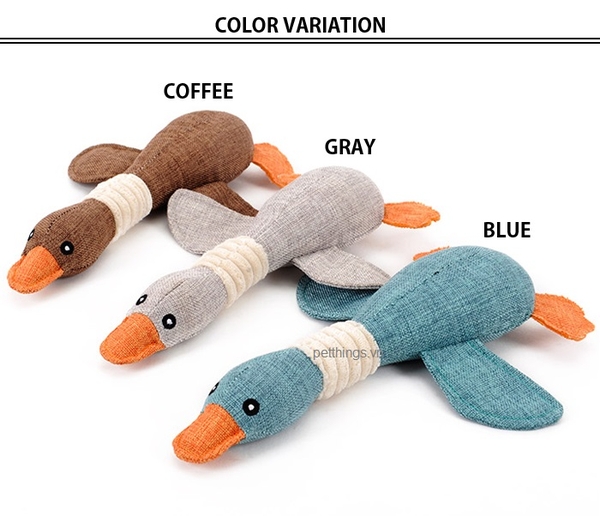 Đồ chơi sẽ phát ra tiếng kêu "chút chít" khi chó cắn vào phần loa âm thanh được tích hợp ở cổ vịt, khiến trò chơi trở nên thú vị hơn.