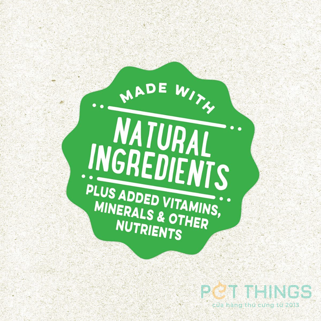 Bột thịt gà, Lúa mì xay, Gạo ủ, Bột ngô Gluten, Mỡ gia cầm (Được bảo quản bằng Tocopherols hỗn hợp), Chất xơ yến mạch, Hương vị gia cầm tự nhiên, Hạt lanh xay, Men khô, Kali Clorua, Canxi Cacbonat, Muối Axit Citric (một chất bảo quản), Màu nước ép trái cây, Taurine, DL-Methionine, Tocopherols hỗn hợp (một chất bảo quản), DL-Alpha Tocopherols Acetate (Nguồn Vitamin E), Sulfate sắt, màu nghệ, kẽm Sulfate, Niacin , Copper Sulfate, D-Canxi Pantothenate (Vitamin B5), Bổ sung vitamin A, Thiamine Mononitrate (Vitamin B1), Manganous Oxide, Bổ sung Riboflavin (Vitamin B2), Bổ sung Pyridoxine Hydrochloride (Vitamin B6), Bổ sung vitamin B12, Vitamin D12 , Natri Selenite, Axit Folic, Canxi Iốt, Coban Carbonate, Chiết xuất hương thảo