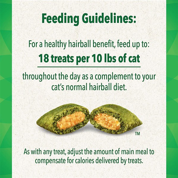 Chỉ sử dụng Feline Greenies Hairball cho mèo từ 1 tuổi trở lên (>12 tháng tuổi). Để đạt hiệu quả tối ưu, cho ăn 12 viên/ngày trong cùng một lúc. Cũng như với bất kì sản phẩm khác tương tự, điều chỉnh lượng thức ăn hằng ngày để đạt đủ lượng calo cần thiết trong ngày. Luôn luôn theo dõi mèo của bạn thường xuyên, luôn để nước sạch sẵn sàng cho mèo.