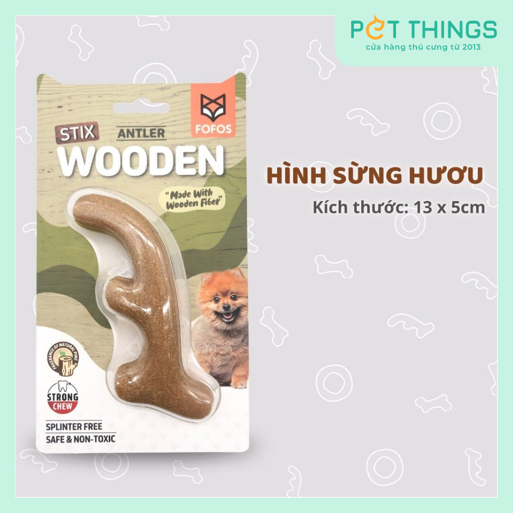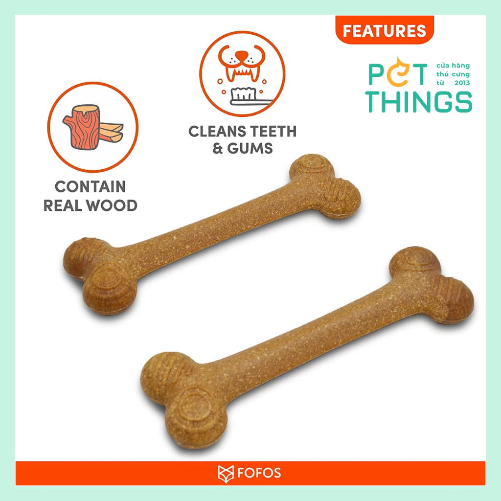 Xương gỗ Fofos là đồ chơi nhai rất tốt cho răng và nướu của chó. Sản phẩm chứa gỗ thật và là một vật thay thế đồ nội thất hoàn hảo, thứ mà chó rất thích cắn phá.