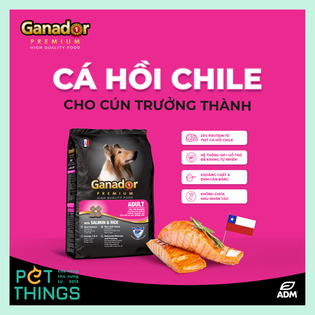 Ganador Cá hồi & Gạo là dòng hạt khô dành cho chó trưởng thành trên 12 tháng tuổi. Sản phẩm được lập công thức và thiết kế tại Pháp đảm bảo mức độ dinh dưỡng cao để duy trì giai đoạn sống lâu dài nhất của chó lớn, cho tất cả các giống và kích cỡ.