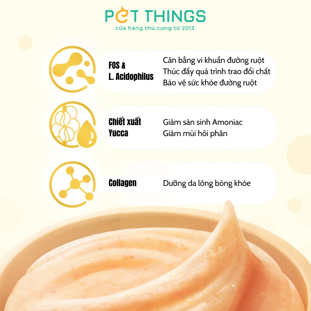 *CÁ TUYẾT & SÒ ĐIỆP: Nước, Cá tuyết 30%, Thịt gà 18%, Sò điệp 4%, Trứng cá tuyết 5%, Dầu cá, Tinh bột khoai tây, Collagen, Bột Yucca