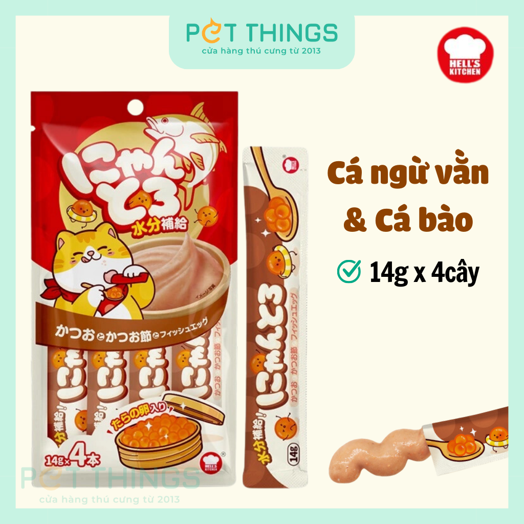 *CÁ NGỪ VẰN & CÁ BÀO: Cá ngừ 42%, Nước, Thịt gà 6%, Trứng cá tuyết 5%, Cá bào 2%, Dầu cá, Tinh bột khoai tây, Collagen, Bột Yucca