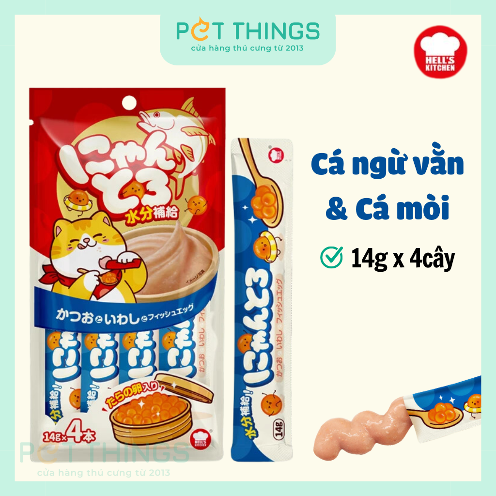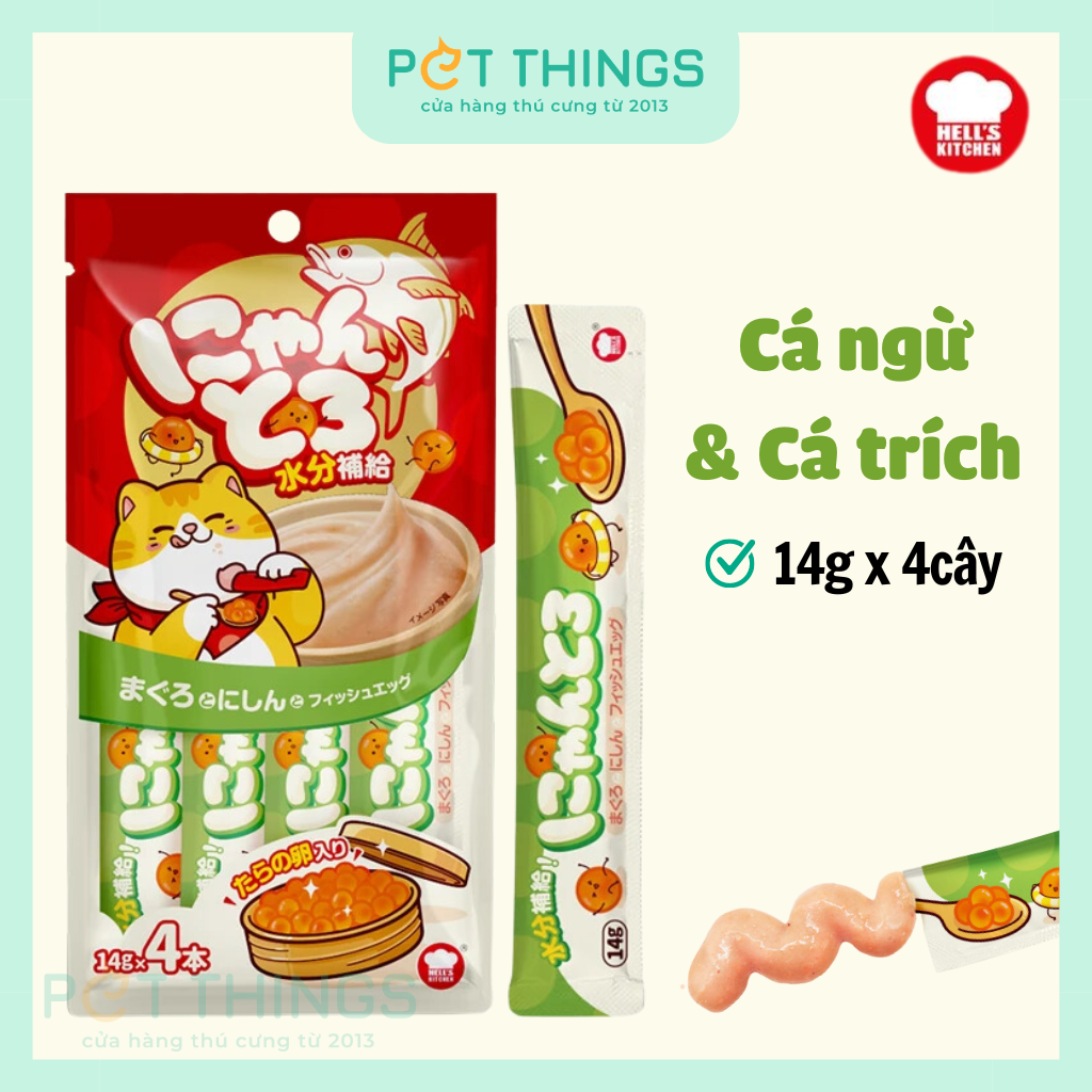 *CÁ NGỪ & CÁ TRÍCH: Cá ngừ 42%, Nước, Thịt gà 6%, Cá trích 4%, Trứng cá tuyết 5%, Dầu cá, Tinh bột khoai tây, Collagen, Bột Yucca