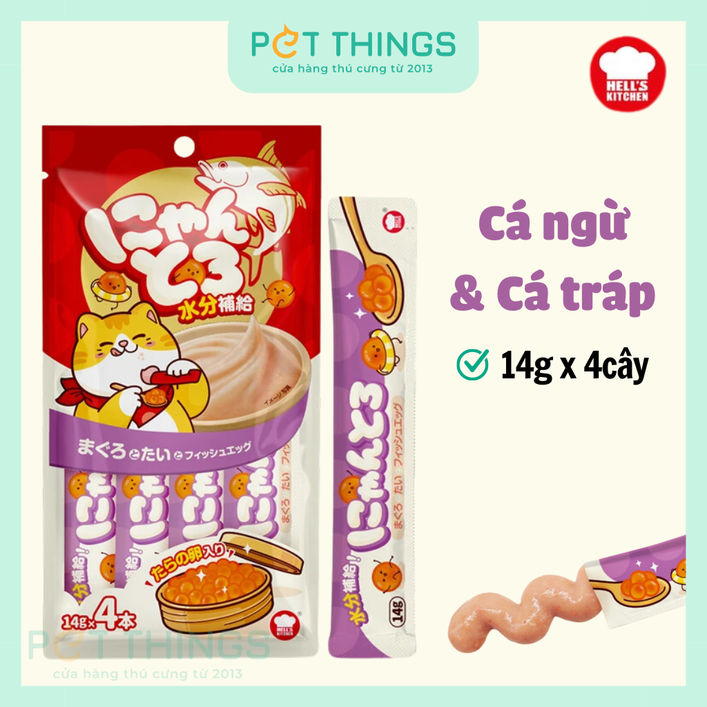 *CÁ NGỪ & CÁ TRÁP : Cá ngừ 42%, Nước, Thịt gà 6%, Cá tráp 4%, Trứng cá tuyết 5%, Dầu cá, Tinh bột khoai tây, Collagen, Bột Yucca
