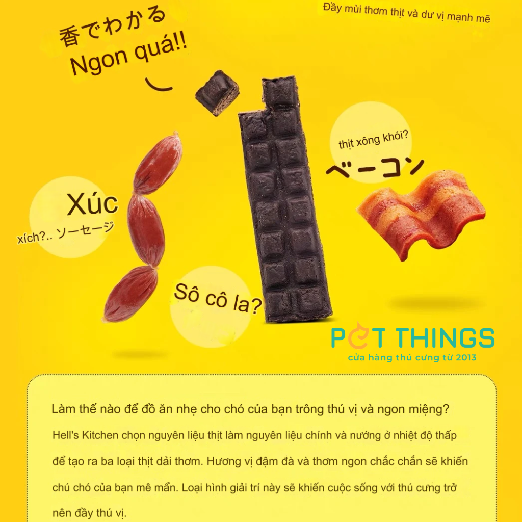 Làm thế nào để làm cho món ăn nhẹ của chó cưng vừa thú vị về hình thức vừa ngon miệng? Hell's Kitchen chọn thịt làm nguyên liệu chính và nướng chúng ở nhiệt độ thấp để tạo ra các dải thịt hấp dẫn. Hương vị đậm đà và thơm ngon chắc chắn sẽ khiến chú chó của bạn mê mẩn!