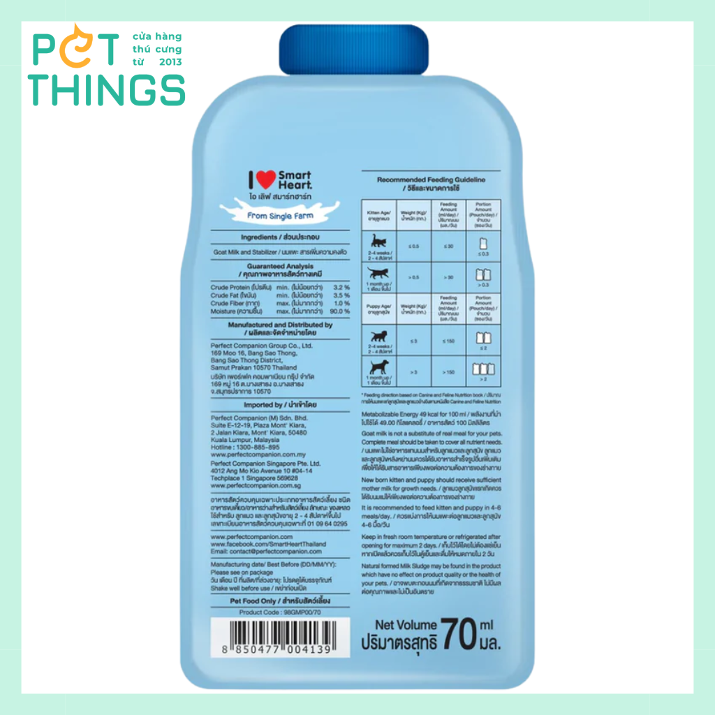 Sữa dê tiệt trùng pha sẵn cho chó mèo I Love SmartHeart® Goat Milk