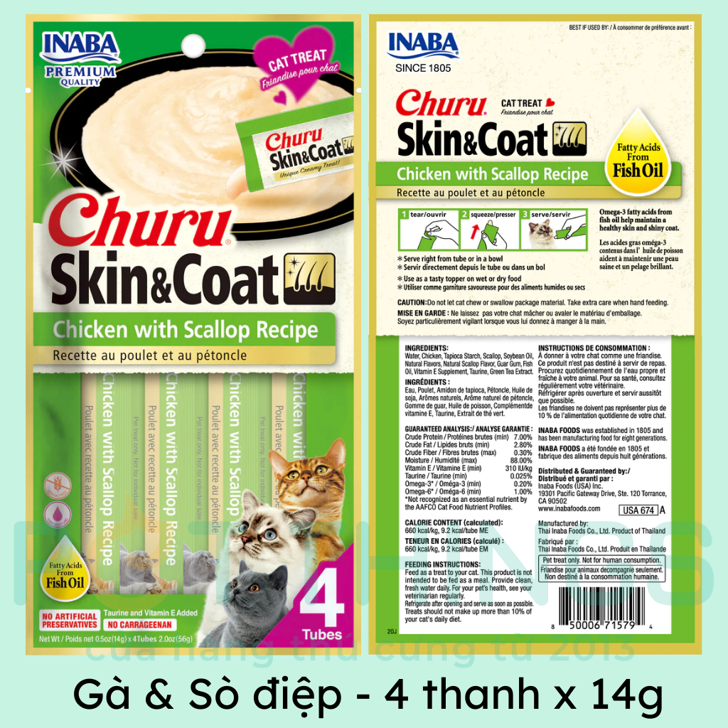 Súp thưởng CIAO Churu cho mèo Skin & Coat 14gx4, chăm sóc da & lông
