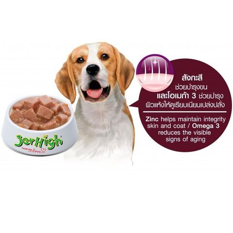 Thịt nấu sốt Jerhigh được tạo thành từ những khối thịt ngon lành cùng nước sốt thơm ngon. Năm công thức khác nhau với hương vị hấp dẫn sẽ khiến chó cưng không thể chối từ.