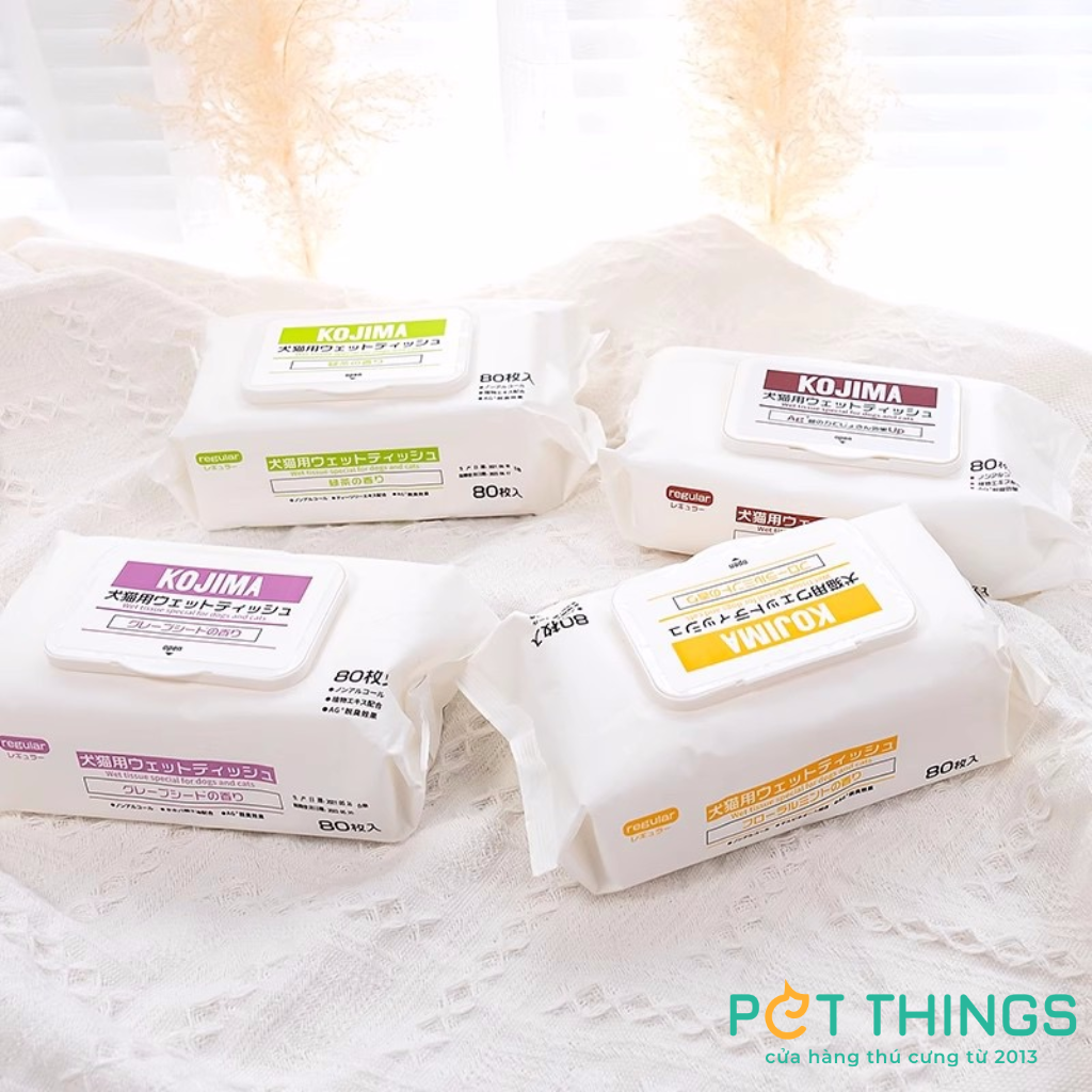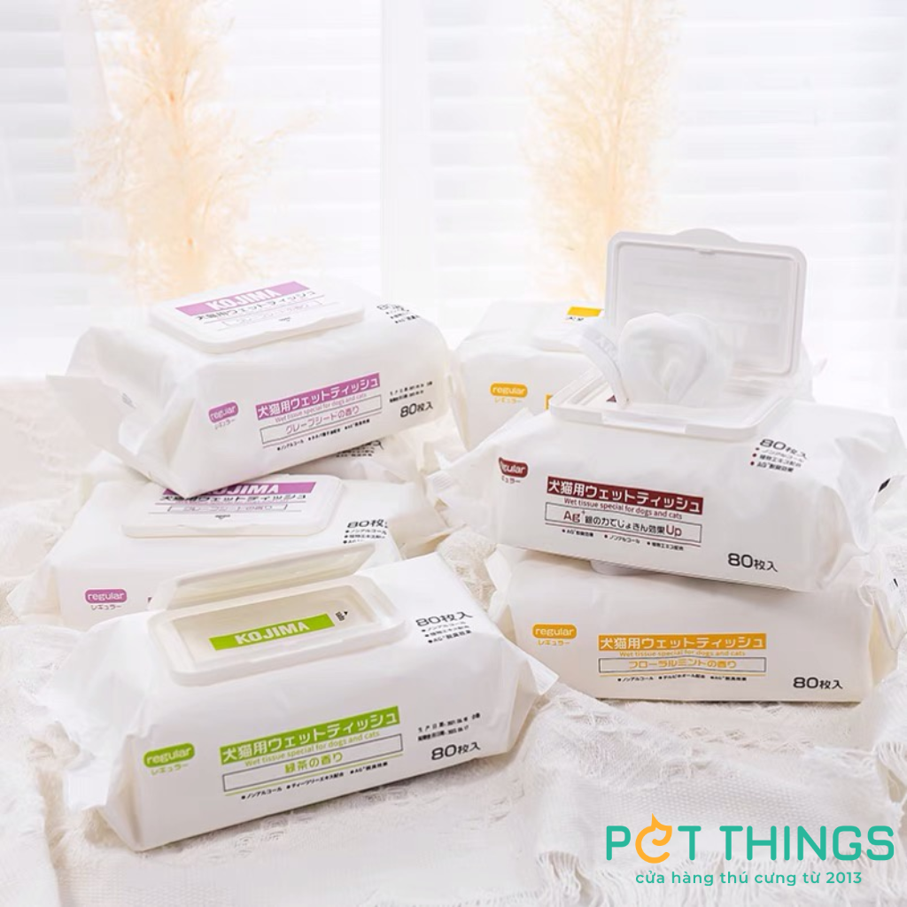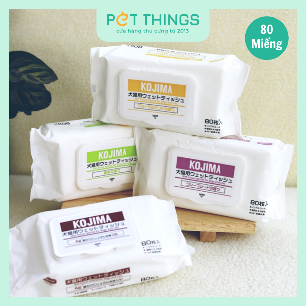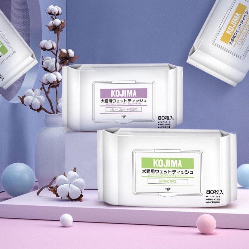 KOJIMA Pet Wet Tissue - Khăn Ướt Kháng Khuẩn Cho Thú Cưng, 80 miếng