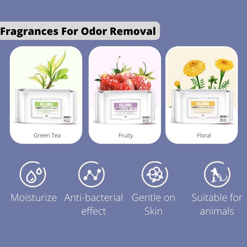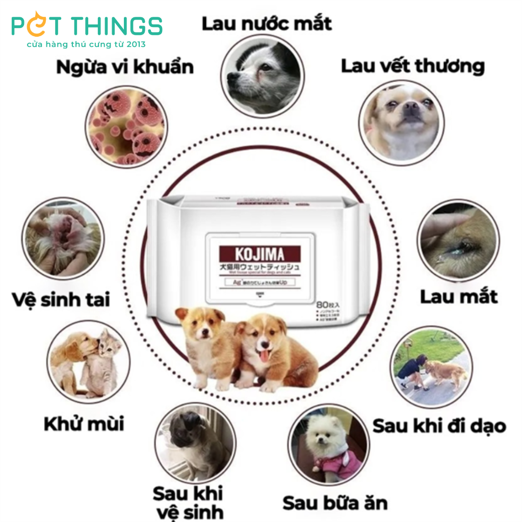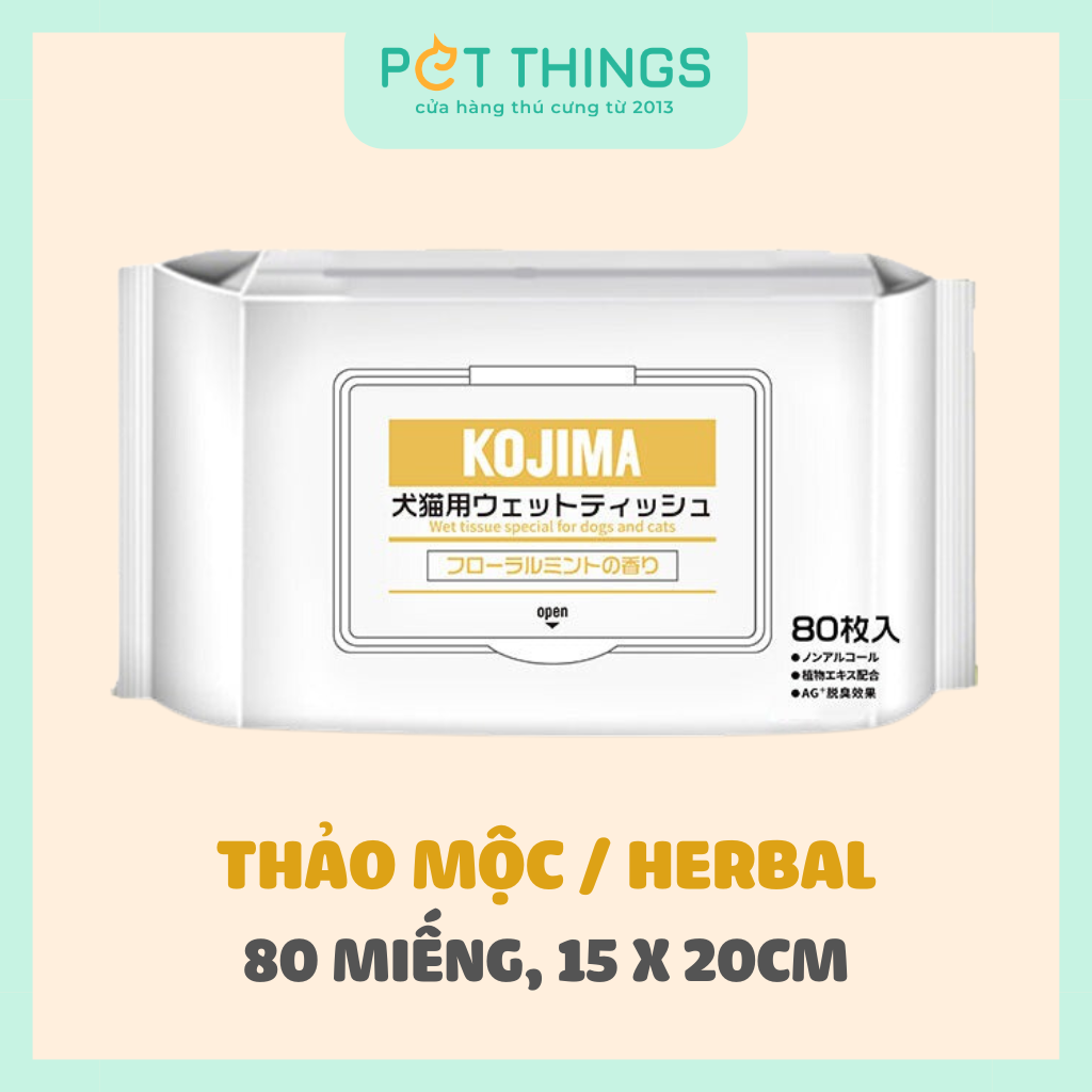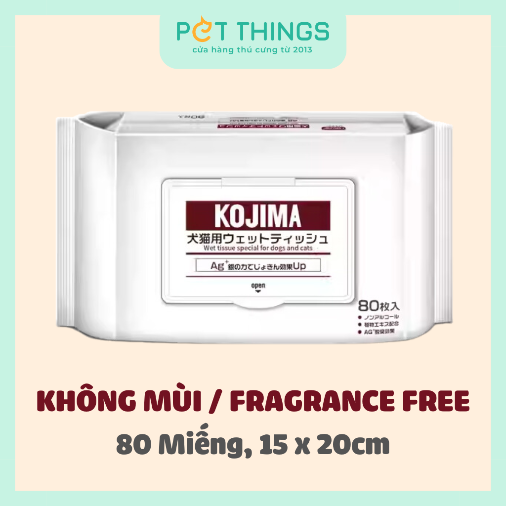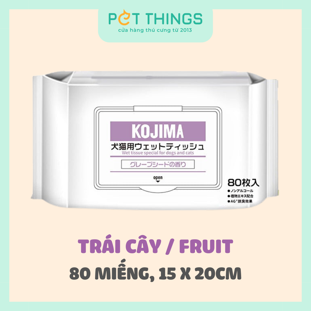 KOJIMA Pet Wet Tissue - Khăn Ướt Kháng Khuẩn Cho Thú Cưng, 80 miếng