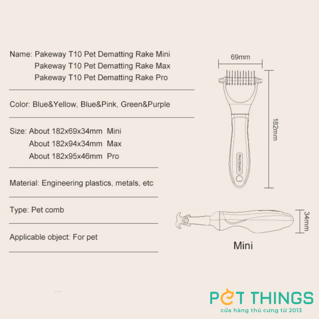 Bạn có thú cưng nhiều lông thường xuyên bị rối và bết không? Lược PAKEWAY T10 Pet Dematting Rake sẵn sàng trợ giúp bằng cách loại bỏ lông chết và lớp lông tơ, đồng thời gỡ bỏ mọi nút thắt hoặc lông rụng trong khi chải. Với tay cầm mềm mại, chống trượt, sử dụng dễ dàng và thoải mái - ngay cả đối với những người có bàn tay nhạy cảm. Nó cũng giúp mát xa da và đảm bảo lưu thông máu tốt hơn, thúc đẩy bộ lông khỏe mạnh và sáng bóng