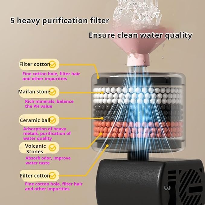 - [Hệ thống lọc năm lớp] Bộ lọc máy uống nước cho chó mèo này sử dụng vật liệu lọc gồm 2 lớp bông mật độ cao, lớp than hoạt tính và đá núi lửa cho khả năng lọc năm lần, mang đến nguồn nước sạch và tươi mát hơn cho thú cưng của bạn.