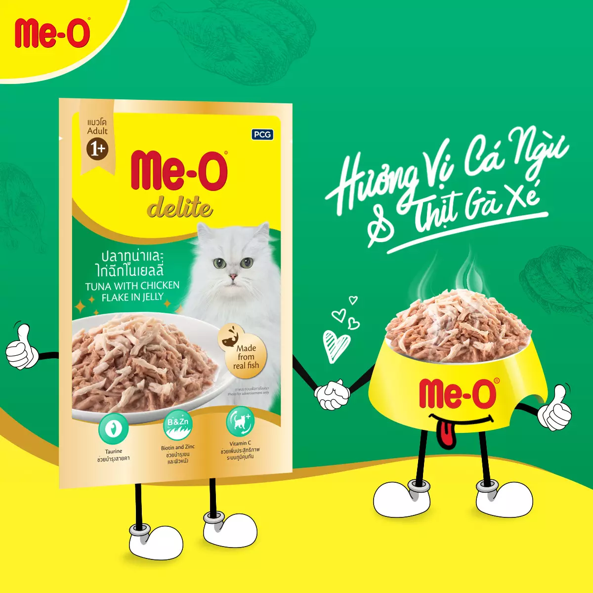 Me-O Delite là bữa ăn thơm ngon dinh dưỡng với đầy đủ các thành phần chất lượng cao cho những chú mèo yêu quý của bạn. Chúng tôi sử dụng phần tốt nhất của cá ngừ tươi để phục vụ khẩu vị cao của mèo. Bạn có thể tự tin rằng mèo của bạn sẽ trở nên vui vẻ và khỏe mạnh. Nhiều loại hương vị có sẵn và sẵn sàng trở thành một phần trong bữa ăn hoàn hảo của mèo. Khi mèo của bạn dùng thử Me-O Delite, chúng tôi đảm bảo rằng chúng sẽ yêu thích nhiều hơn. Bữa ăn của những chú mèo của bạn sẽ không còn là một bữa ăn bình thường nữa.