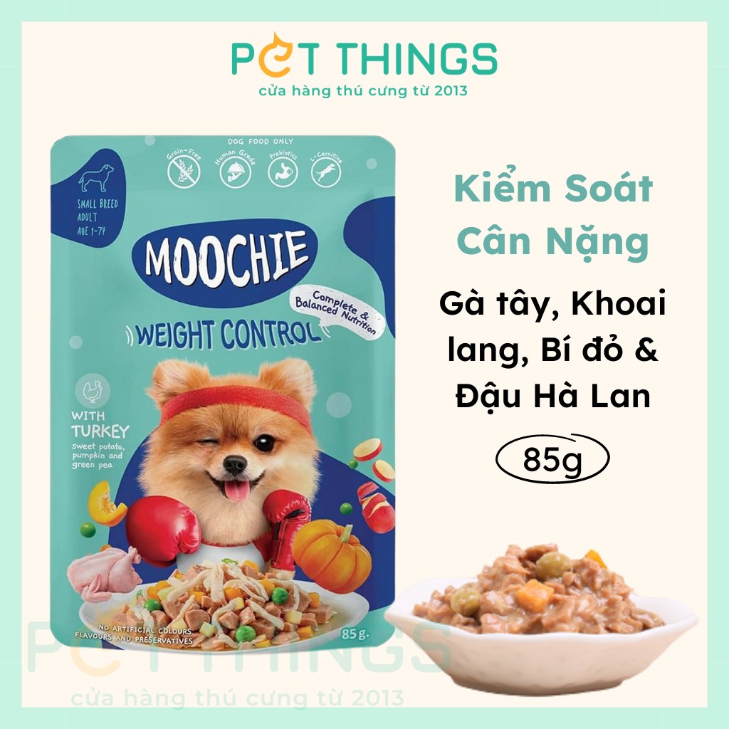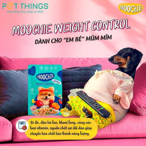 Moochie Weight Control, thức ăn ướt giúp kiểm soát cân nặng cho mèo với các nguyên liệu đầy bổ dưỡng như: gà tây, khoai lang, bí đỏ và đậu Hà Lan. Sản phẩm mang đến cho mèo nguồn dinh dưỡng đầy đủ và cân bằng để mèo có một cuộc sống khỏe mạnh và hạnh phúc.