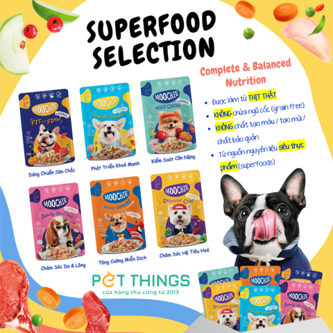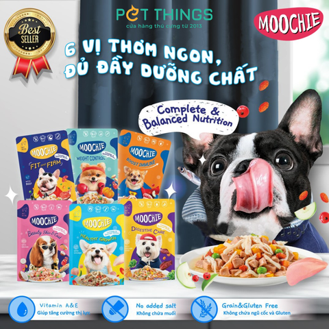 Moochie là thức ăn cho thú cưng được khởi xướng bởi một nhóm người đam mê thú cưng của họ và coi chúng như thành viên trong gia đình. Mỗi thực đơn được tạo ra không chỉ để đáp ứng mức độ dinh dưỡng mà còn đáp ứng sự hài lòng của họ và sức khỏe tổng thể của thú cưng.