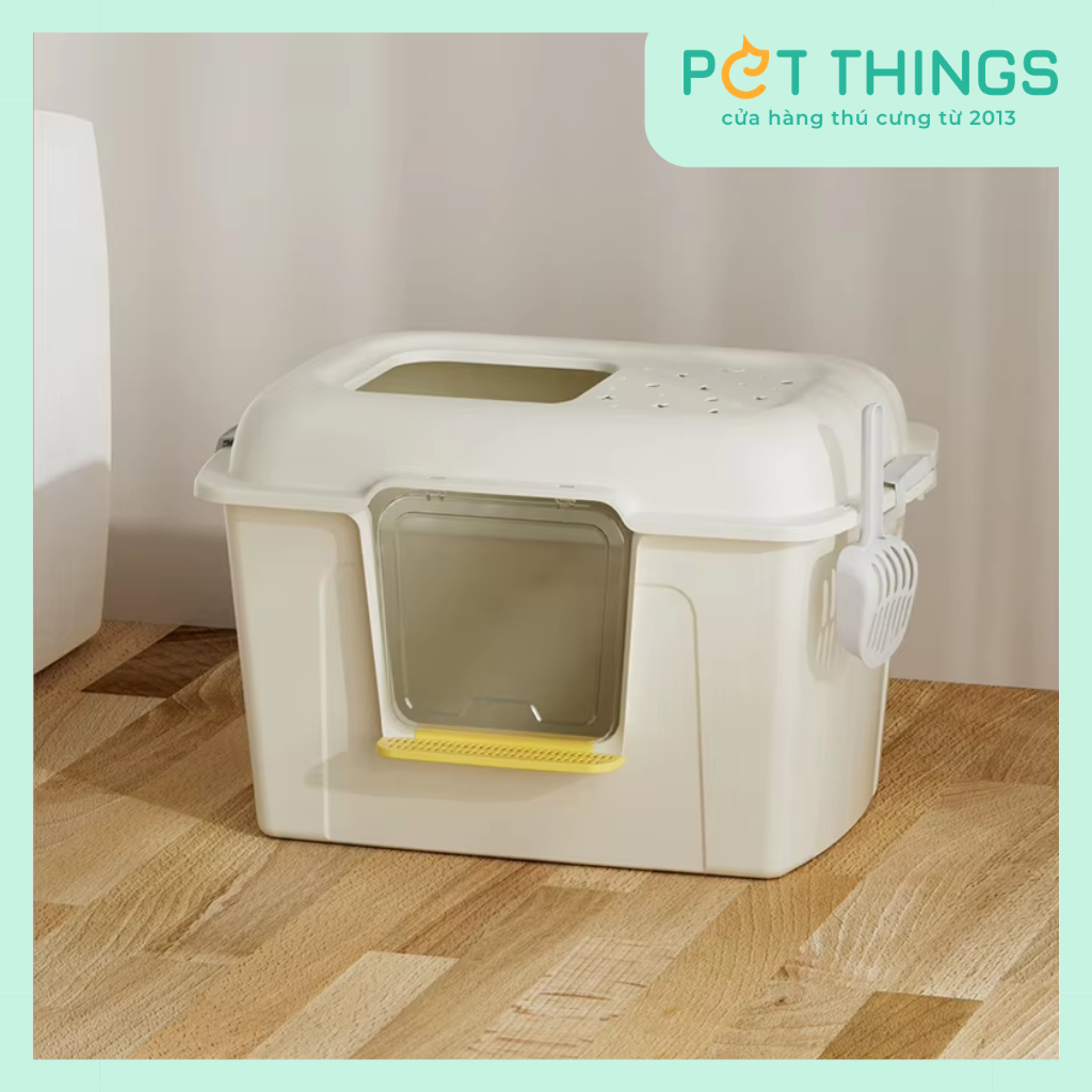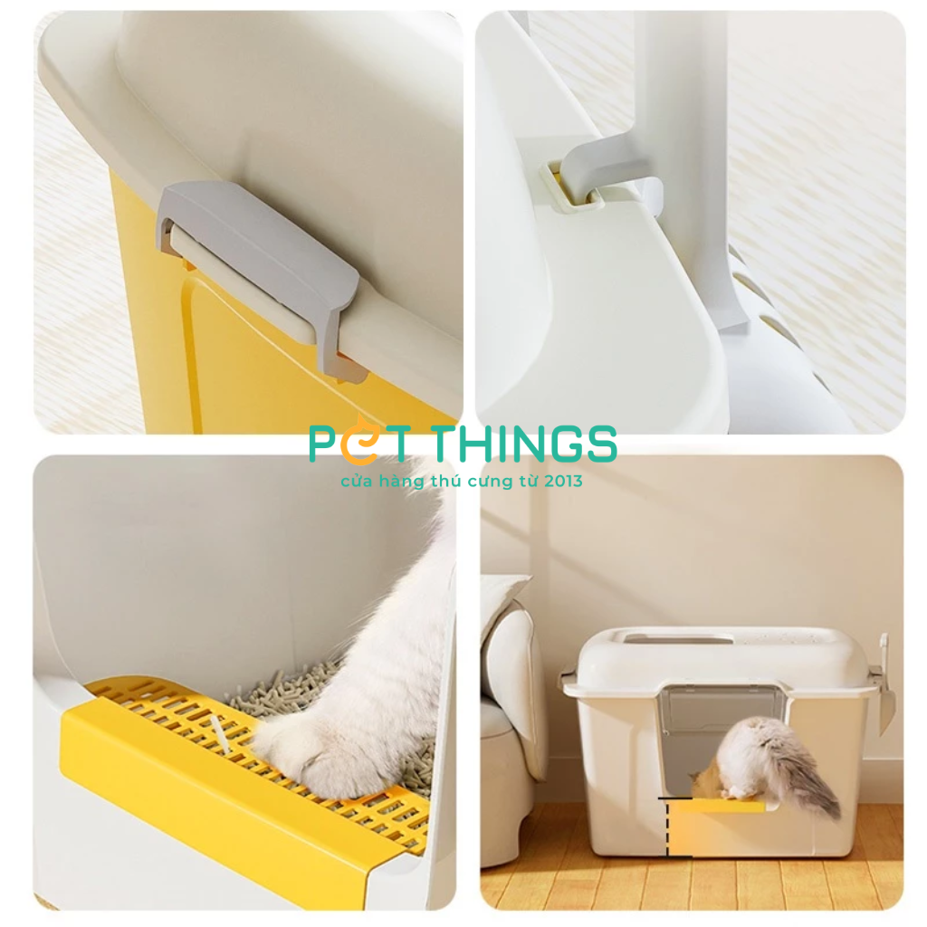 Mỗi người bạn mèo đều xứng đáng có một không gian vệ sinh sạch sẽ và riêng tư. Nhà vệ sinh cho mèo này có thiết kế nửa kín với 2 lối ra vào thuận tiện và để giảm thiểu tối đa việc văng cát. Với thiết kế thanh lịch và đơn giản, sản phẩm không chỉ là một phụ kiện thiết thực cho mèo cưng, nó còn mang đến nét phong cách và tinh tế cho không gian sống của bạn