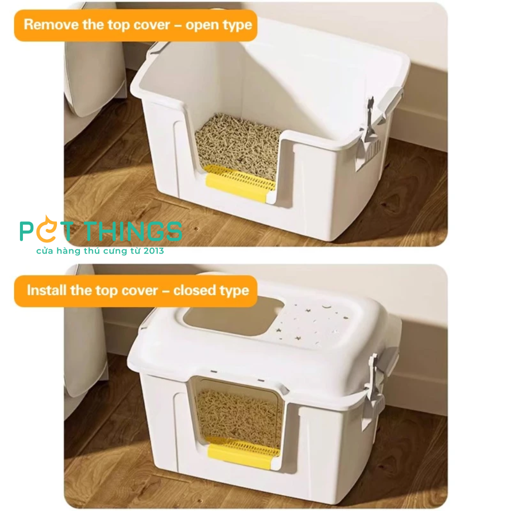 Cấu trúc khép kín giúp chống văng cát hoàn hảo. Đồng thời bảo vệ sự riêng tư của mèo, giúp chúng cảm thấy an toàn và thoải mái hơn, giảm mùi hôi phát tán trong nhà và giữ không khí trong lành.