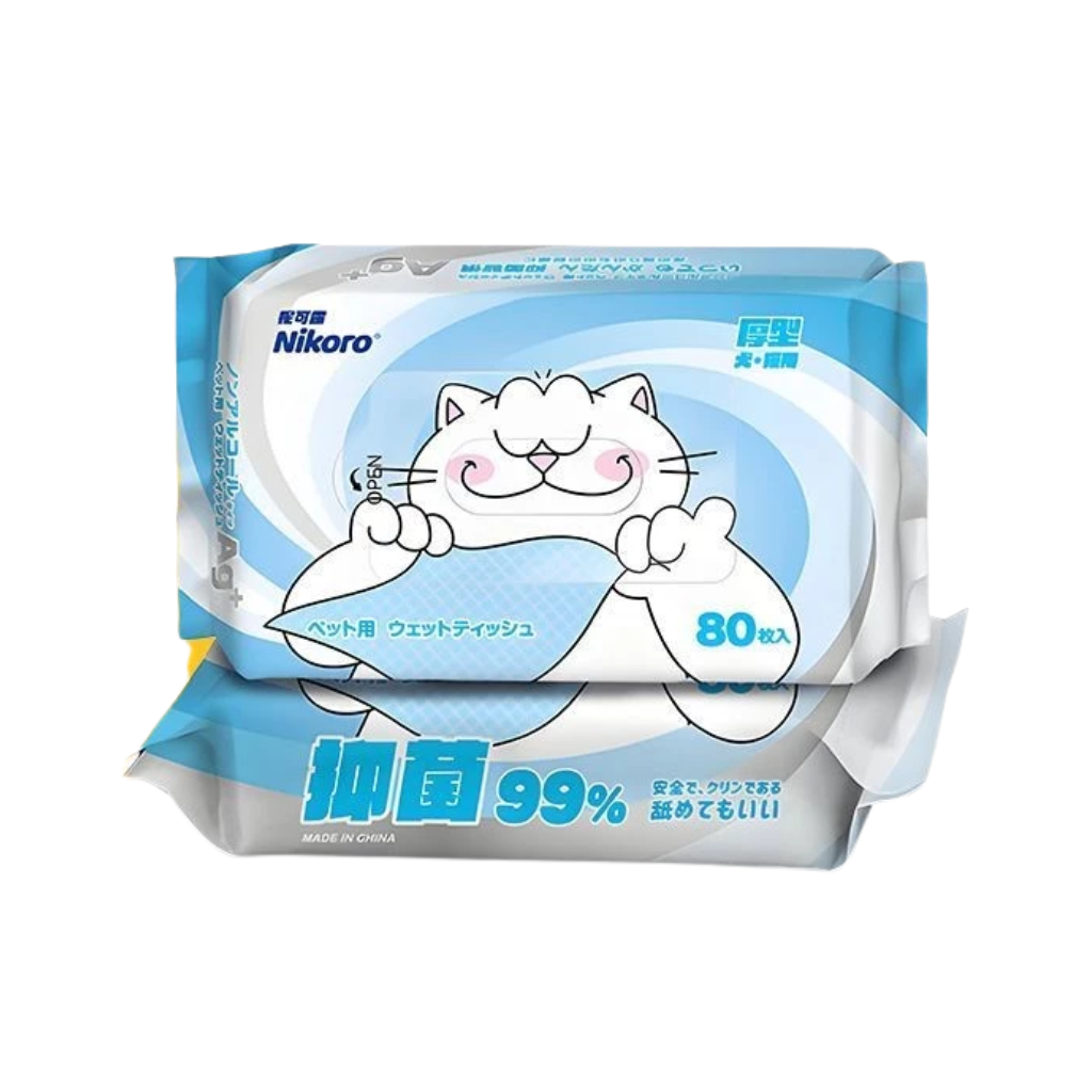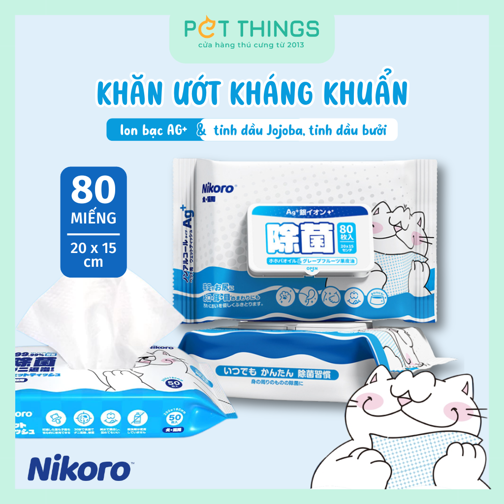 Khăn Ướt Nikoro Kháng Khuẩn Với Ion Bạc Ag+ Cho Chó Mèo, 80 miếng