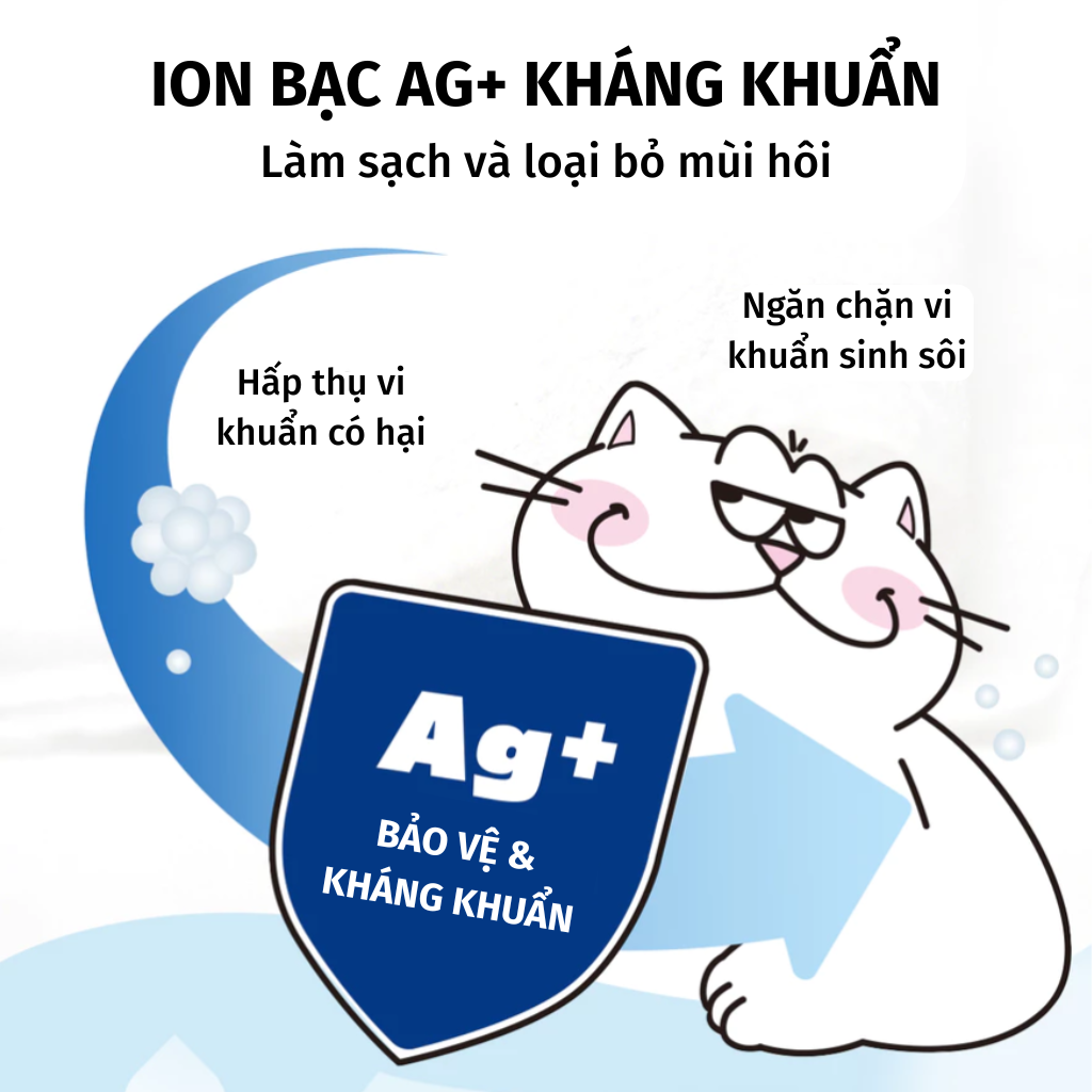 - ION BẠC AG+ - Loại bỏ hiệu quả 99,9% vi khuẩn, rất lý tưởng để vệ sinh bàn chân, lông và những vùng nhạy cảm.