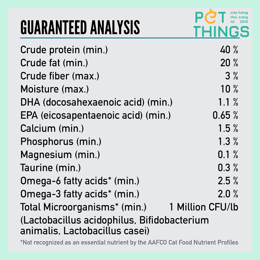 Năng lượng chuyển hóa là 4120 kcal / kg (515 kcal trên 250ml / cốc8oz) với lượng calo được phân phối để hỗ trợ điều hòa tối đa; 39% từ protein, 17% từ carbohydrate và 44% từ chất béo.