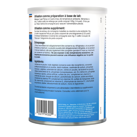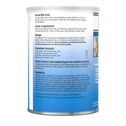 Bảo quản: PetLac đã pha loãng phải được giữ lạnh trong tối đa 24 giờ. Bột đã mở có thể được làm lạnh ngăn mát đến 3 tháng hoặc có thể được đông lạnh đến 6 tháng để giữ độ tươi mới. Không tiếp xúc với nhiệt độ quá cao có thể ảnh hưởng đến chất lượng sản phẩm.