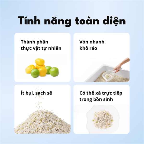 Chất cặn đậu Hà Lan, tinh bột ngô, gôm guar ăn được, chất tạo màu pH, v.v.