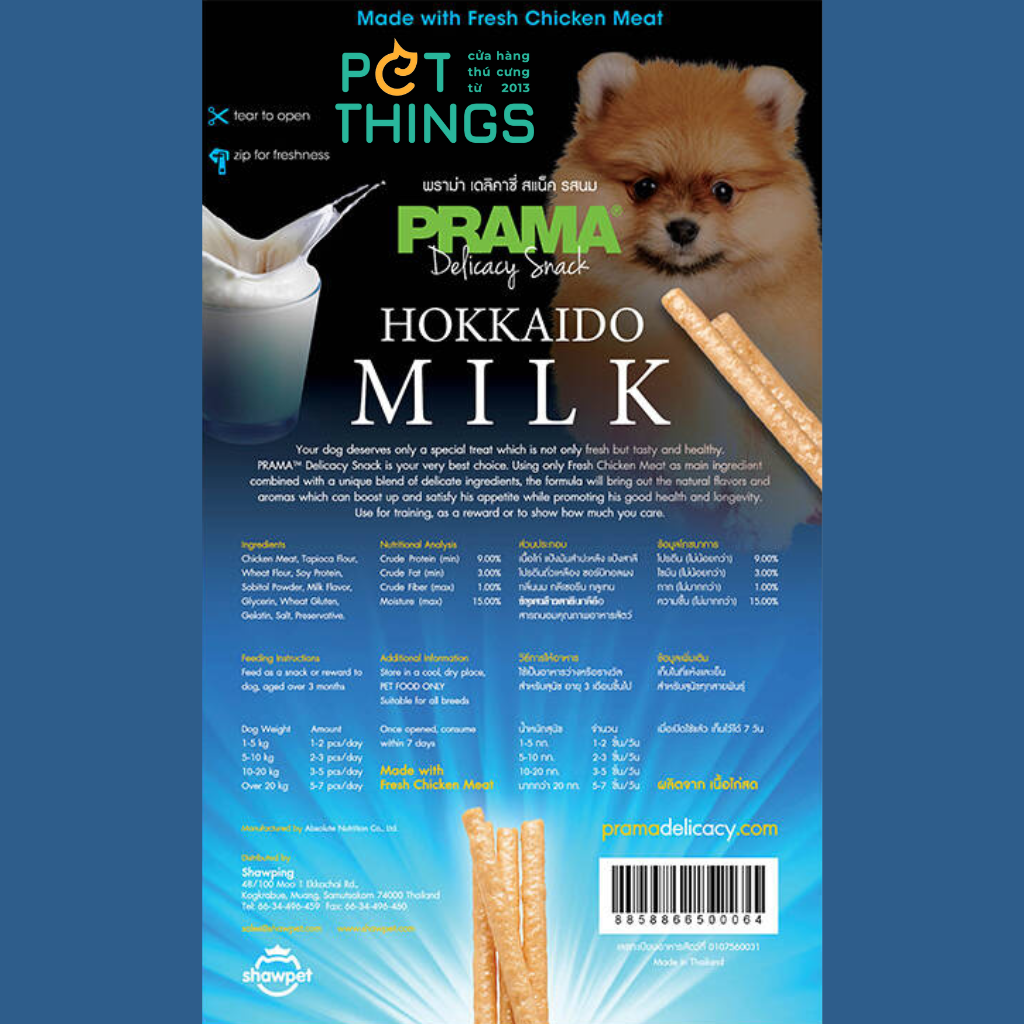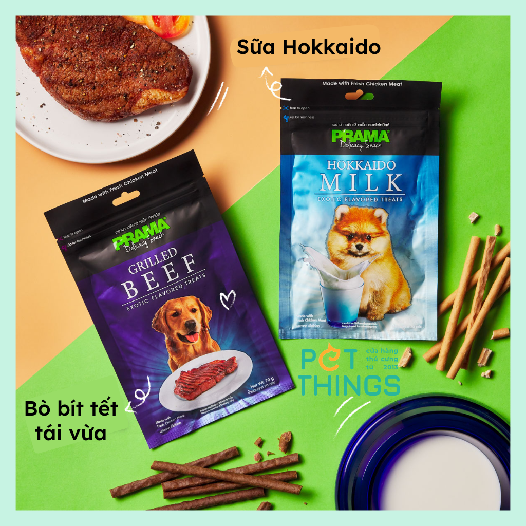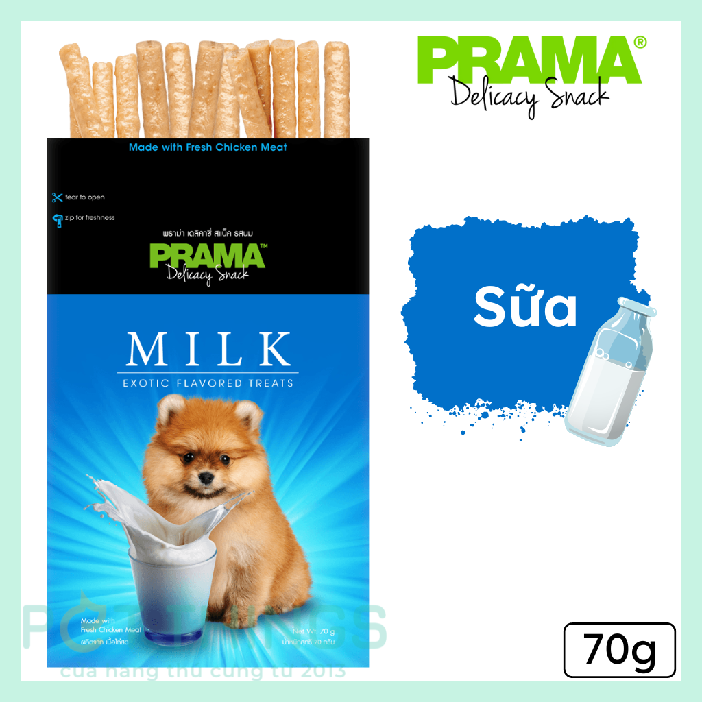 - Prama Classic với nhiều hương vị độc đáo mà PRAMA đã tuyển chọn từ các món ăn khắp nơi trên thế giới. Được chế biến đặc biệt cho chú chó yêu quý của bạn, bao gồm Thịt xông khói, Thịt bò nướng, Gan gà, Sữa Hokkaido, Xúc xích Ý và Cá hồi Đại Tây Dương.