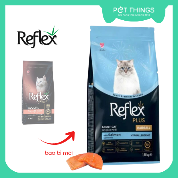 Reflex Plus Adult Cat Hairball & Indoor là thức ăn khô cao cấp cho mèo có công thức hoàn chỉnh và cân bằng từ cá hồi, với tác dụng chống rụng lông, đặc biệt dành cho mèo lông dài nuôi trong nhà trên 12 tháng tuổi