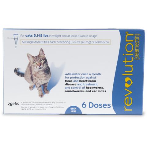 Sản phẩm bôi ngoài da ban đầu của Revolution (selamectin) được dán nhãn an toàn để sử dụng cho những con đực/cái đang sinh sản, cũng như mèo đang mang thai và đang cho con bú . Revolution có phạm vi bao phủ ký sinh trùng tương tự như - phòng ngừa giun tim và điều trị bọ chét, giun móc, giun tròn và ve tai.