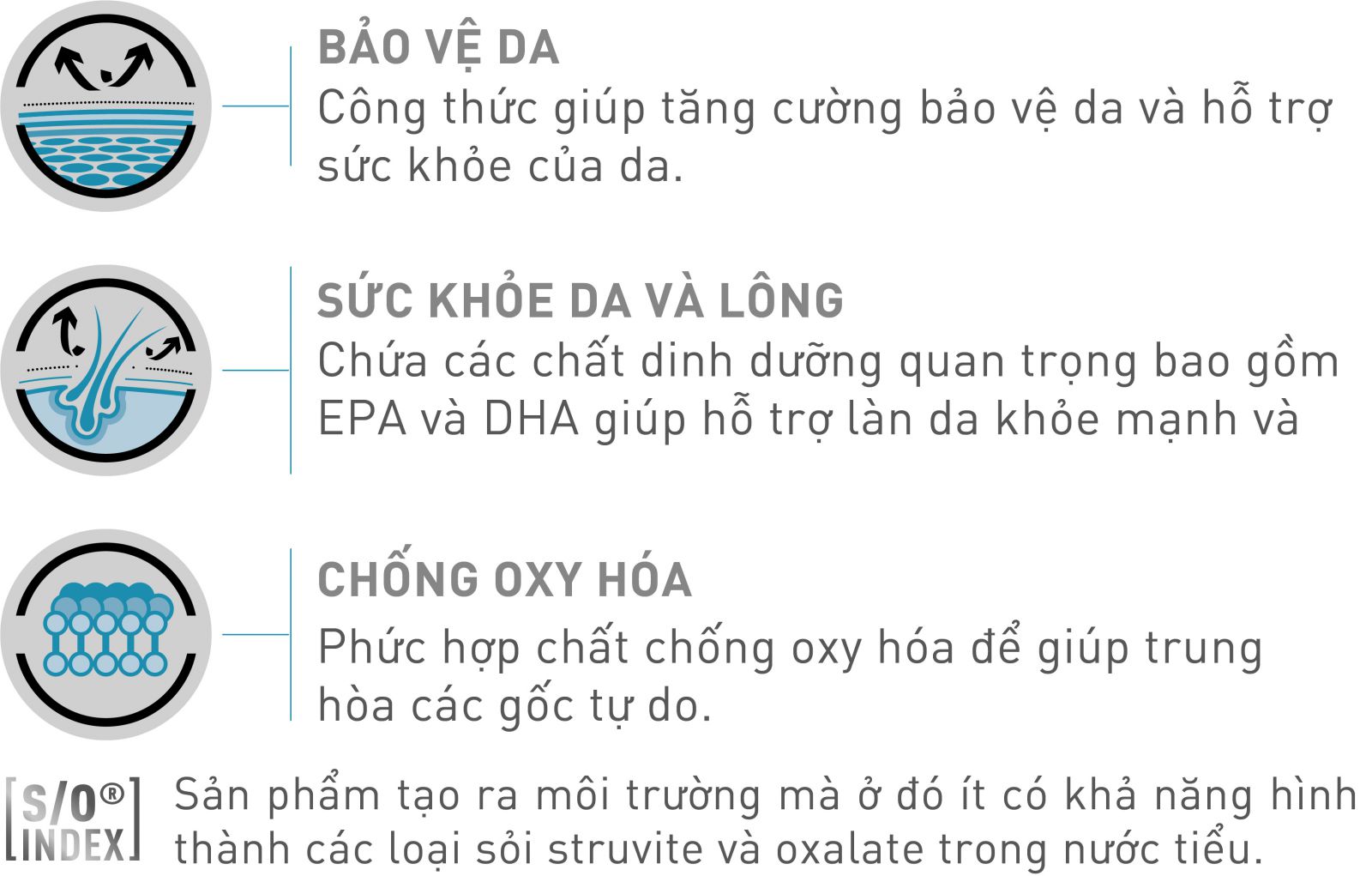 Chứa các chất dinh dưỡng quan trọng bao gồm EPA và DHA, giúp hỗ trợ làn da khỏe mạnh và bộ lông sáng bóng ở mèo có làn da nhạy cảm.