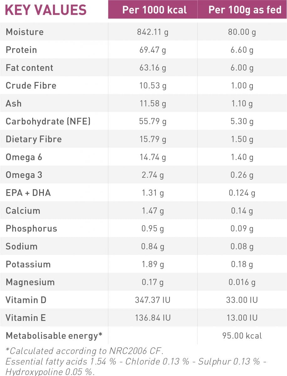 Công thức với hàm lượng phốt pho thấp và protein vừa phải chất lượng cao để hỗ trợ chức năng thận.