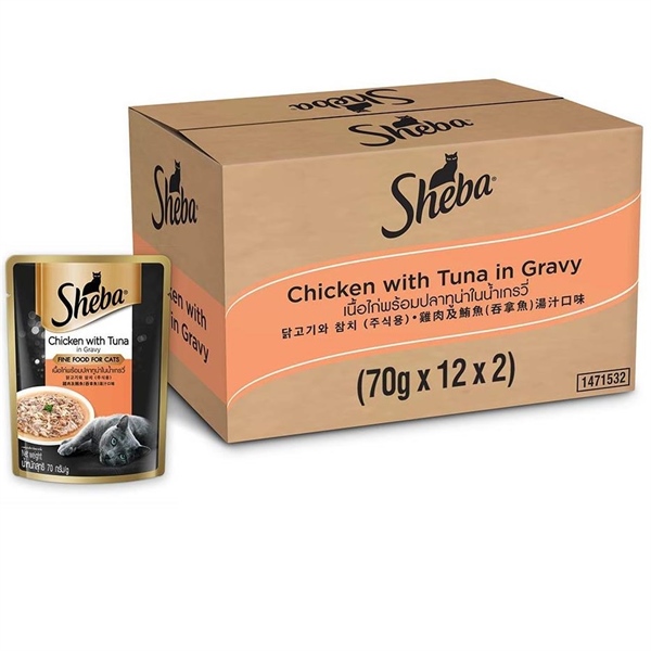 Sheba Chicken with Tuna in gravy 70g - Gà & Cá ngừ nấu sốt