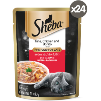 Sheba Tuna, Chicken & Bonito 70g - Cá ngừ, Gà & Cá Bonito nấu sốt