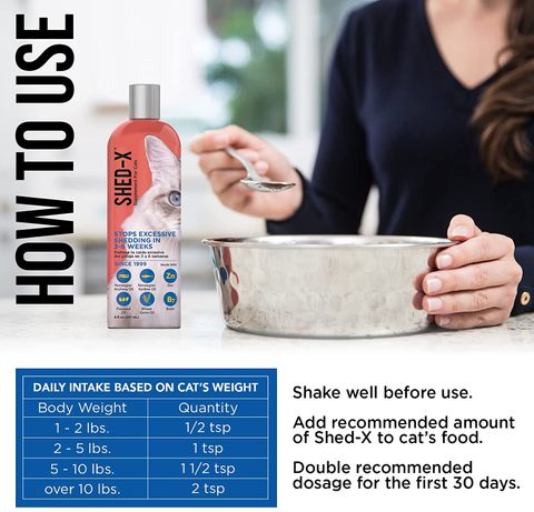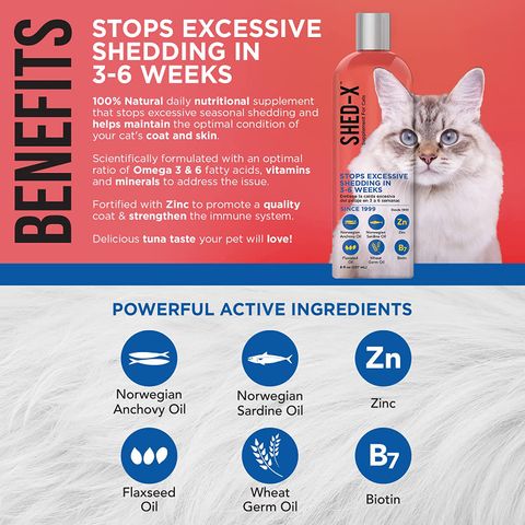 Shed-X là sản phẩm bổ sung dinh dưỡng toàn diện hàng ngày cho mèo có thể loại bỏ tình trạng rụng lông quá nhiều trong 3 đến 6 tuần khi được sử dụng theo chỉ dẫn.