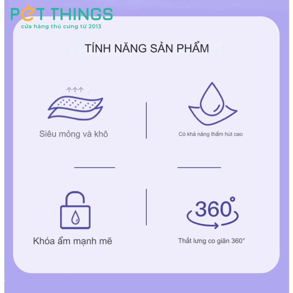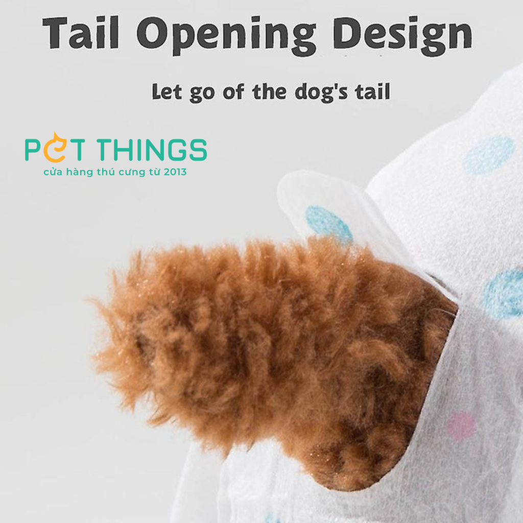 - Thiết kế eo co giãn 360°, cắt ba chiều, đường may dây cao su tinh tế, giảm ma sát với da, không bó sát, vừa khít và có thể dùng làm khăn sinh lý trong thời kỳ kinh nguyệt của chó để ngăn ngừa vi khuẩn nhiễm trùng và tránh những con chó khác quấy rối.