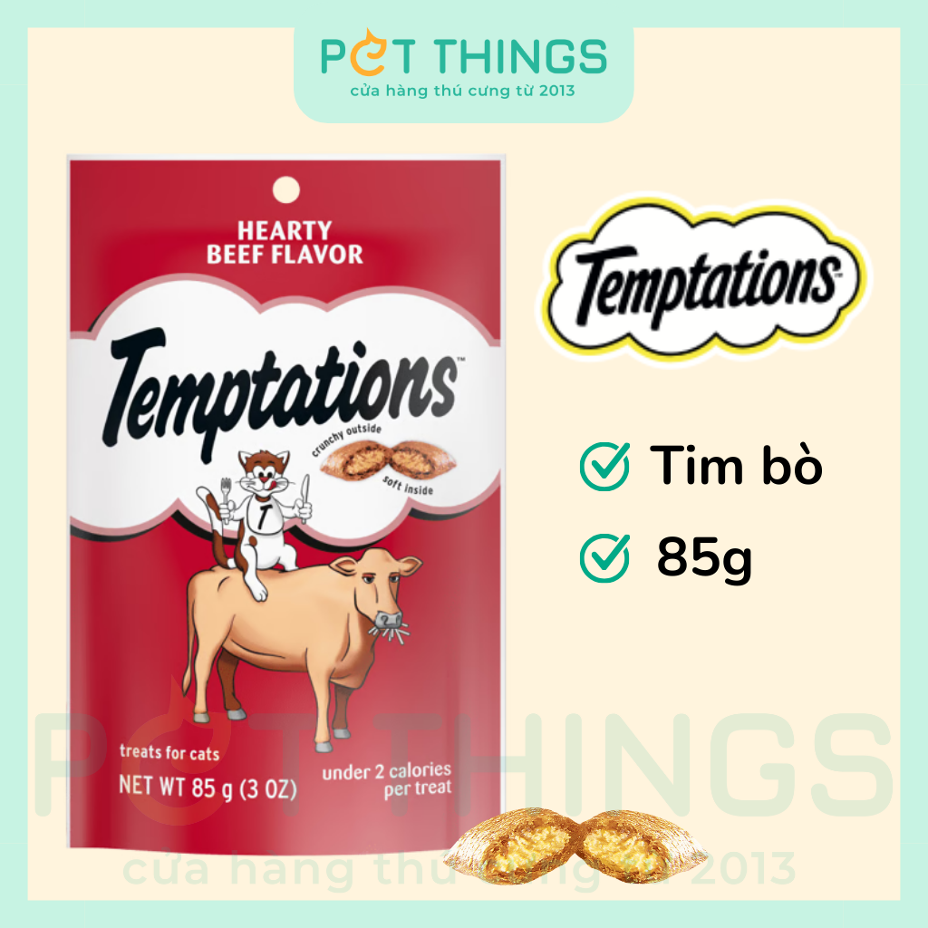 Là thương hiệu bánh thưởng cho mèo số 1 tại Mỹ, bánh thưởng TEMPTATIONS giòn ở bên ngoài và mềm ở bên trong, tạo nên một hương vị tuyệt vời mà mèo không thể cưỡng lại. Chỉ việc lắc túi và mèo cưng của bạn sẽ chạy lại ngay!