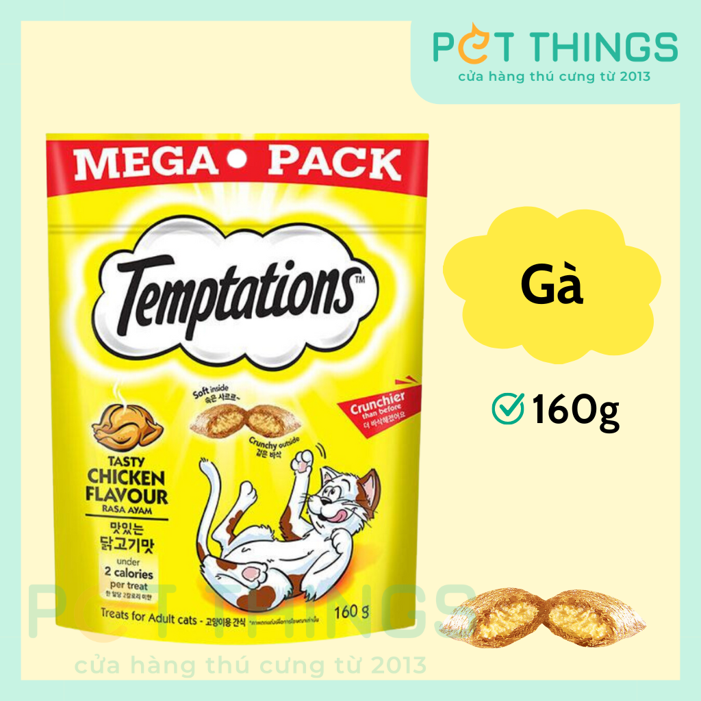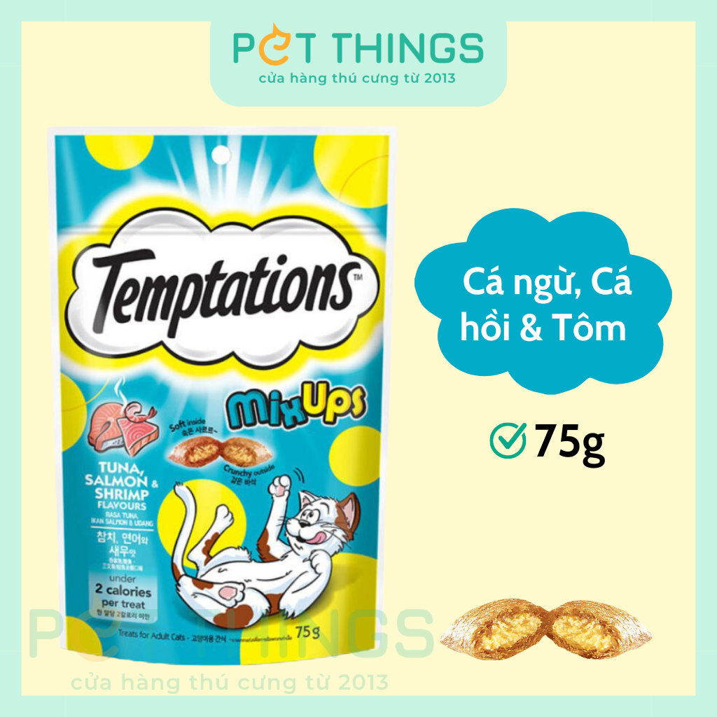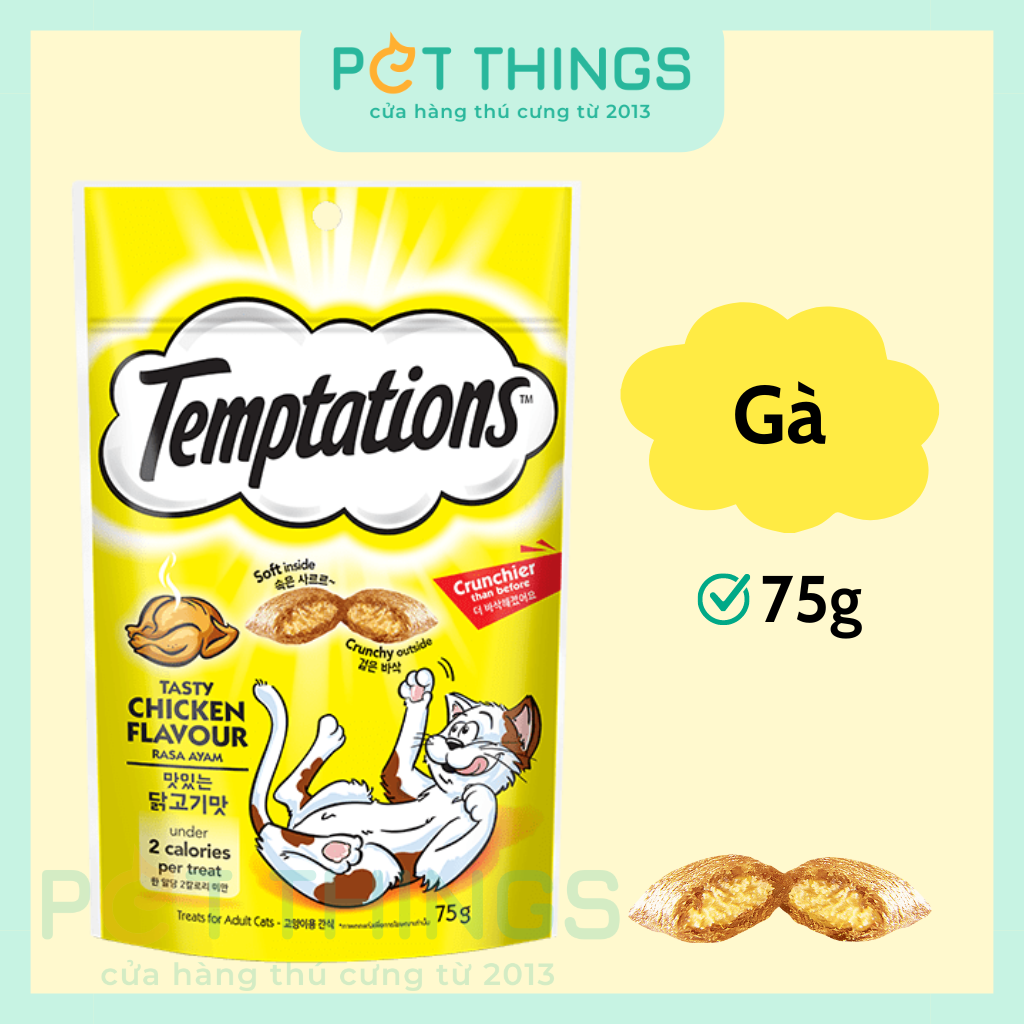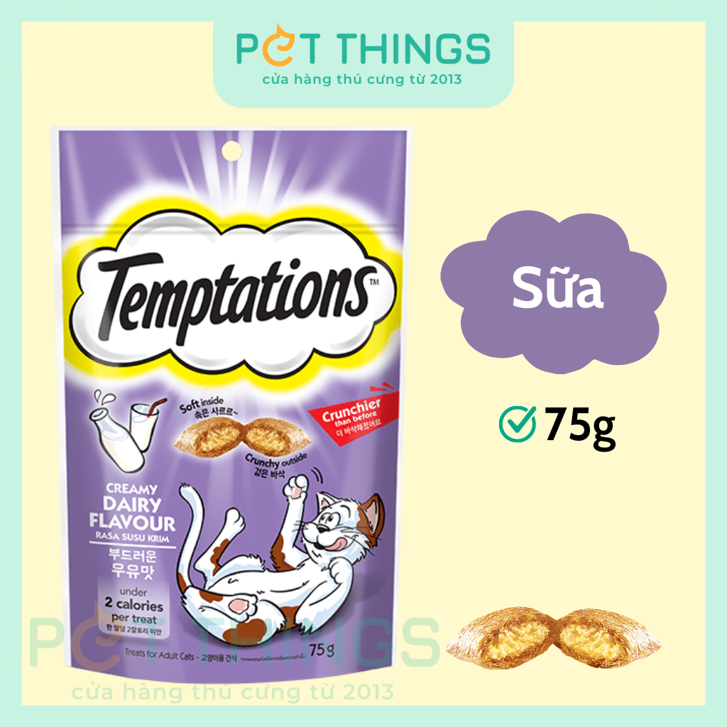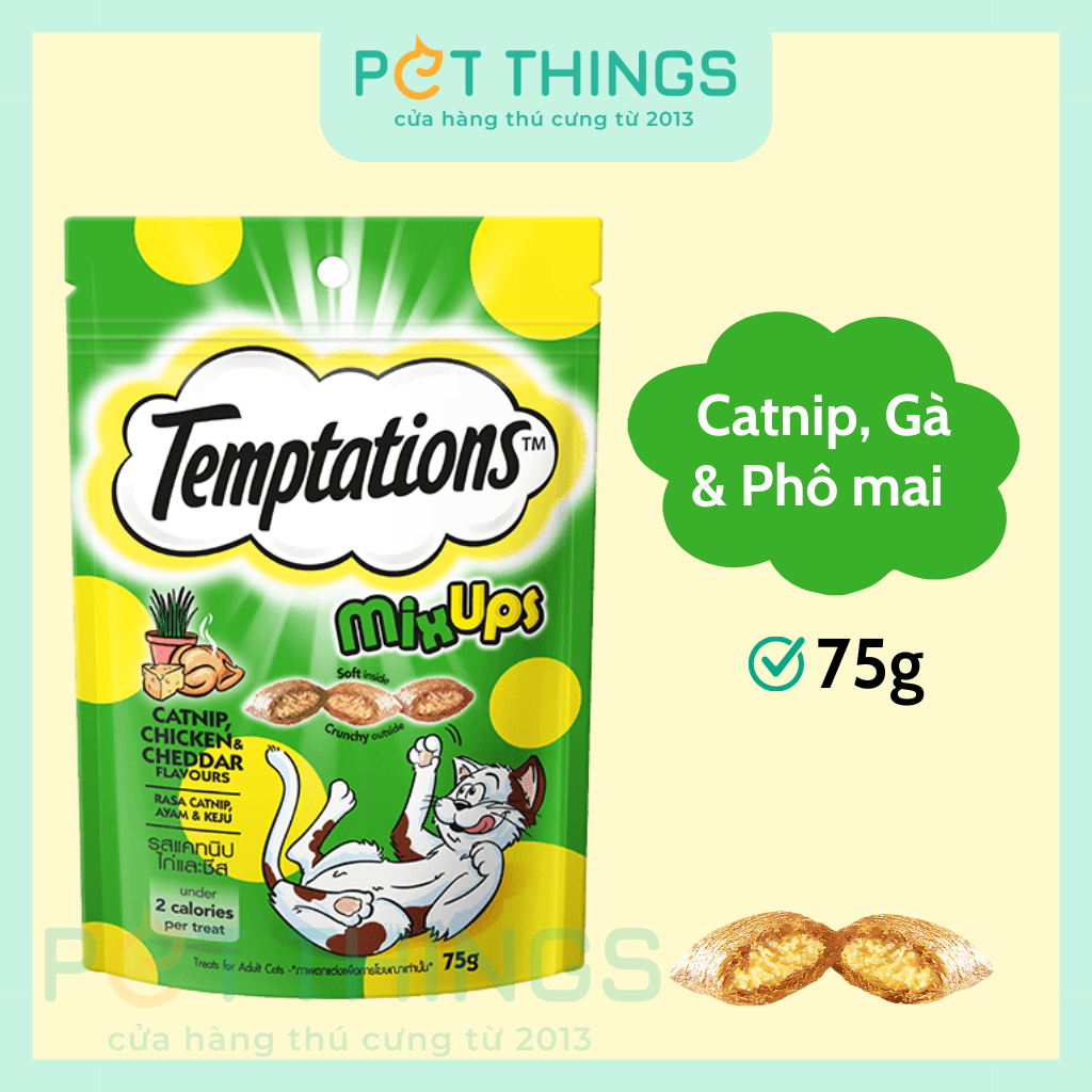 Vỏ ngoài giòn tan, nhân kem bên trong thơm mềm; Temptations ™ với nhiều hương vị hấp dẫn khiến mèo nào cũng mê tít. Thiết kế bao bì tạo ra âm thanh lắc lắc hấp dẫn, hãy chọn ngay hương vị yêu thích, chỉ một lắc mèo cưng sẽ đến bên bạn ngay tức thì.