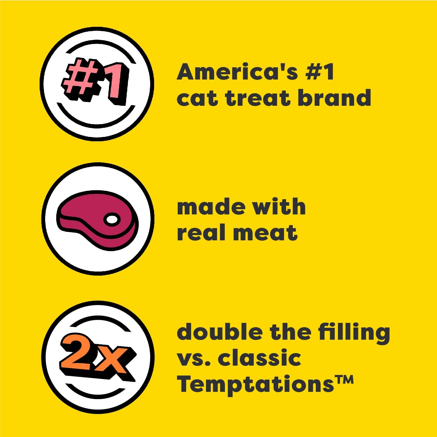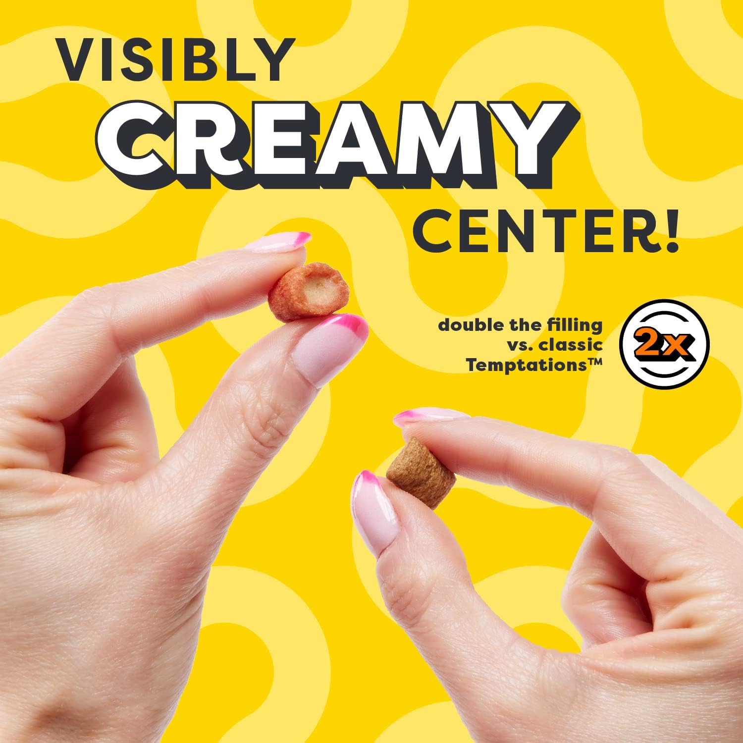 Bánh thưởng Temptations Tender Fills được làm thịt thật với lớp vỏ giòn tan bên ngoài cùng nhân kem mềm mịn ở bên trong. Sự kết hợp tạo nên một hương vị tuyệt vời mà mèo không thể cưỡng lại. Chỉ việc lắc túi và mèo cưng của bạn sẽ chạy lại ngay!