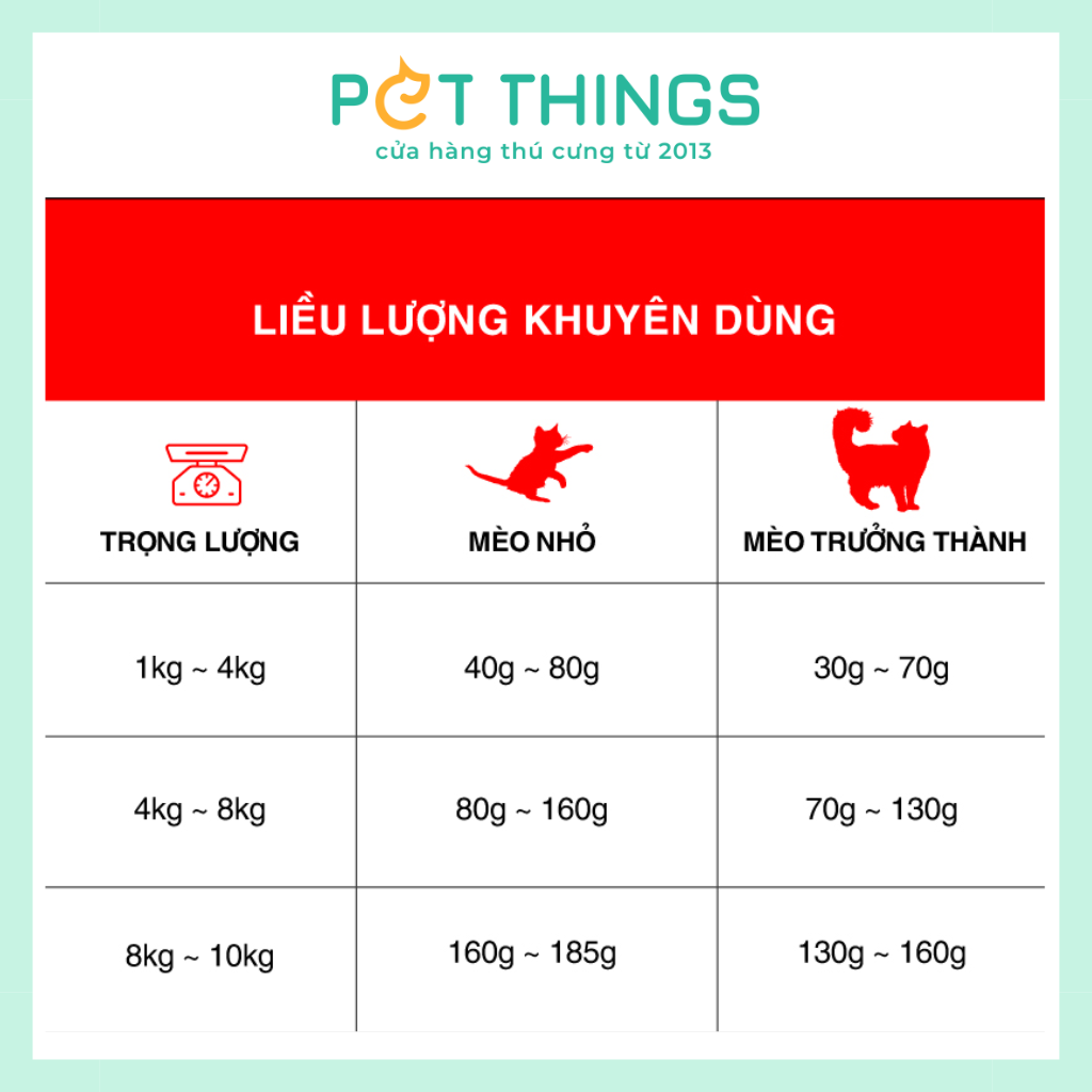 | Mèo nhỏ | 40-80g | 80-160g | 160-185g |