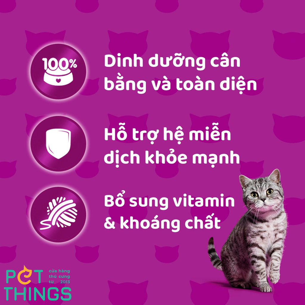 - Chứa hơn 41 dưỡng chất thiết yếu giúp mèo khỏe mạnh và năng động